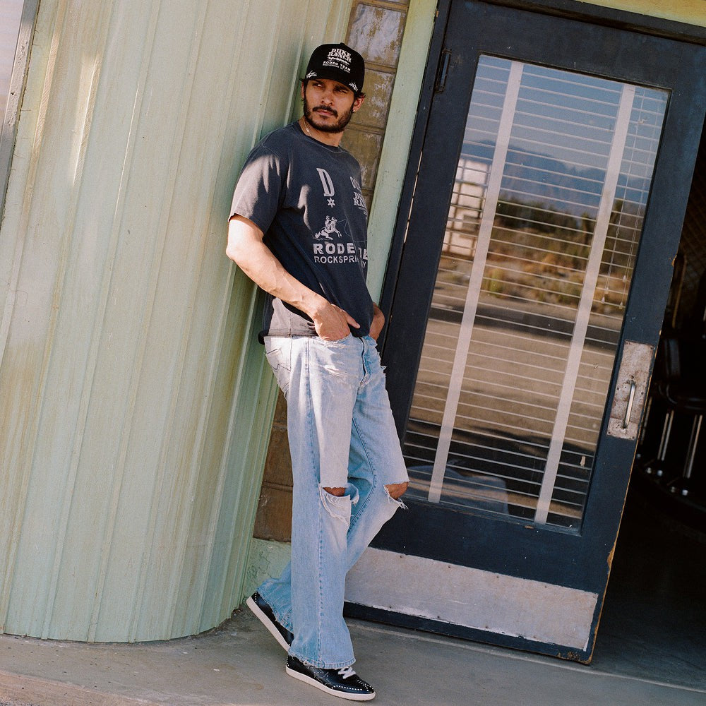 Ace High is an ode to the American West. Featuring footwear, apparel and accessories, updated in Western-inspired textiles like cow-print, pony hair and snake-effect leather and printed with ranch and rodeo-themed artwork from in-house artist, Valentino.