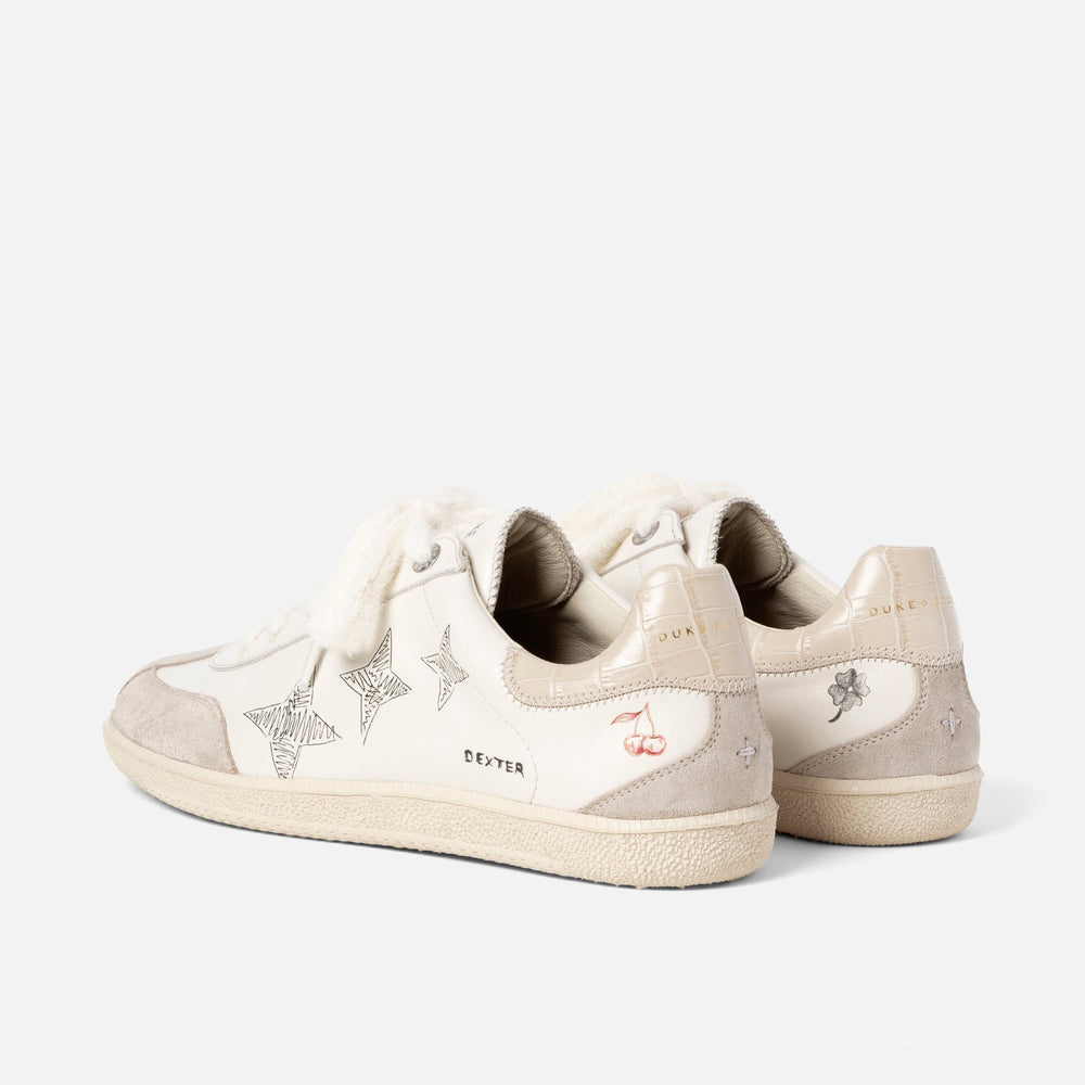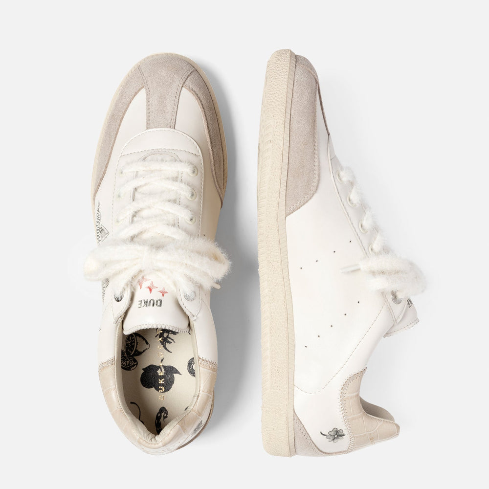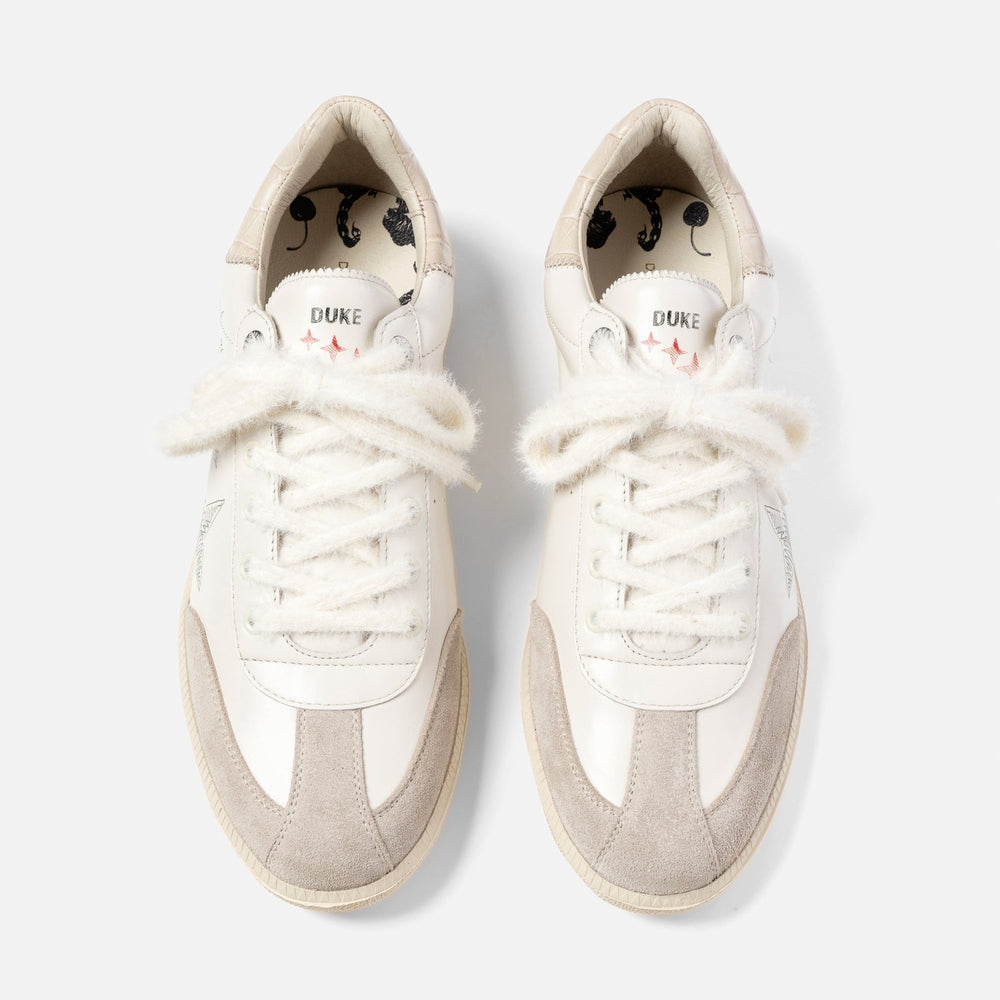 These Plus Duke Sketch Sneakers are an ode to our artistry, with hand-drawn icons like Plus Stars and Cherries along the sidewalls and at the heels. They’re made in Europe from panels of suede, smooth and croc-effect leather and set on slim rubber soles. Details include mohair-style laces, custom-debossed eyelets and removable tongues.