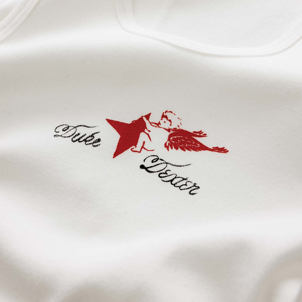 The Duke Cherub Vintage White Vest is printed with our Plus logo at the front and centre. Cut for a slim fit, it’s made from pure cotton and rib-knitted for a natural elasticity.