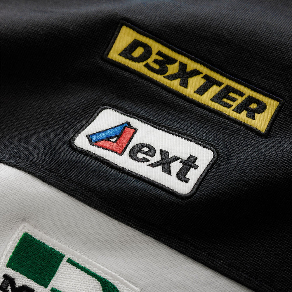 Our DR3 Motorsport sweatshirt is an homage to vintage motocross jerseys. It’s made from 380GSM rustic cotton-jersey with a more natural and traditional construction, like styles of the ‘80s and ‘90s. Throughout, there are references to the track, including hand-drawn sponsors, embroidered patches and tri-colour panelling.
