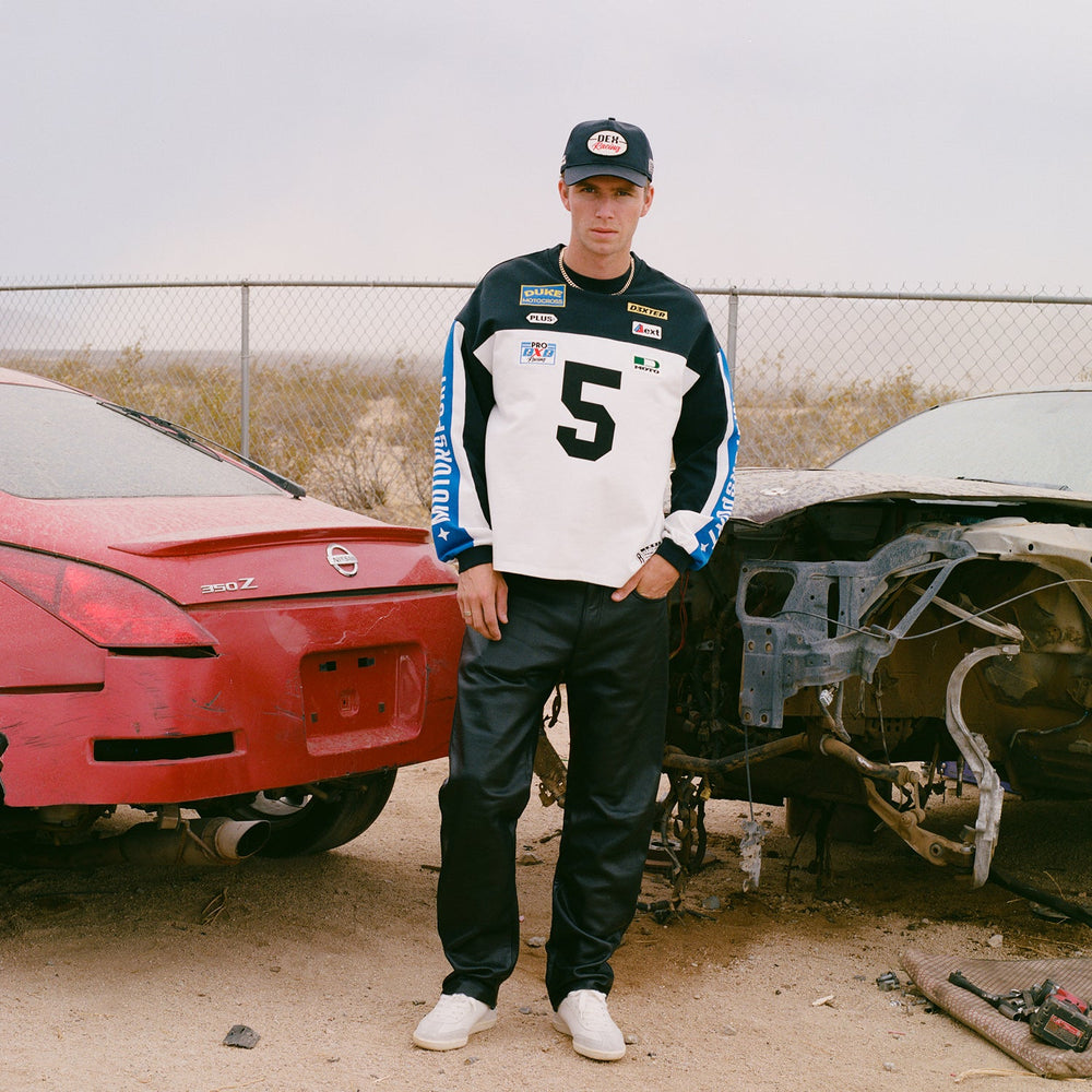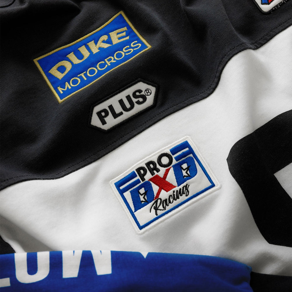 The third instalment of our Duke Racing series. Inspired by the style of motocross and MotoGP. Including screen-printed tees, brush-back hoodies, five-panel caps and custom racing jackets, and our first-ever custom-knitted sweatshirt. Screen-printed and jacquard-knitted with fan-favourite graphics, hand-drawn by the team in Brixton.