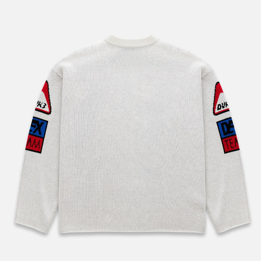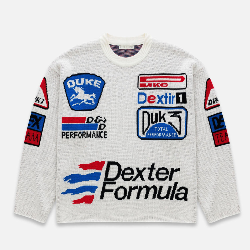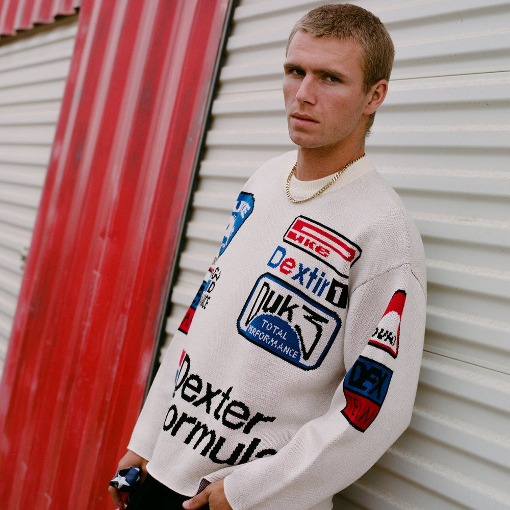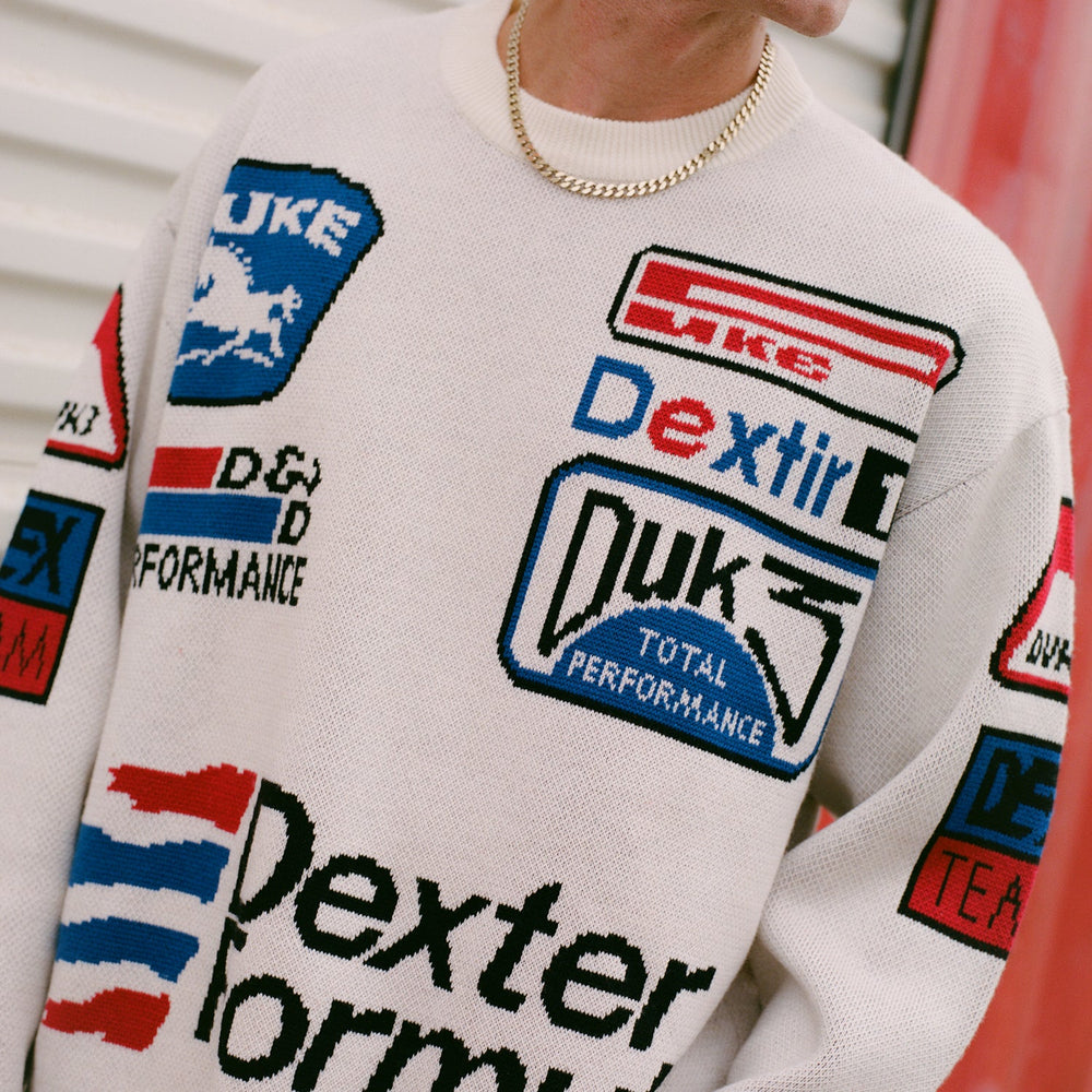 The third instalment of our Duke Racing series. Inspired by the style of motocross and MotoGP. Including screen-printed tees, brush-back hoodies, five-panel caps and custom racing jackets, and our first-ever custom-knitted sweatshirt. Screen-printed and jacquard-knitted with fan-favourite graphics, hand-drawn by the team in Brixton.