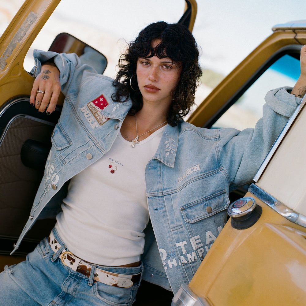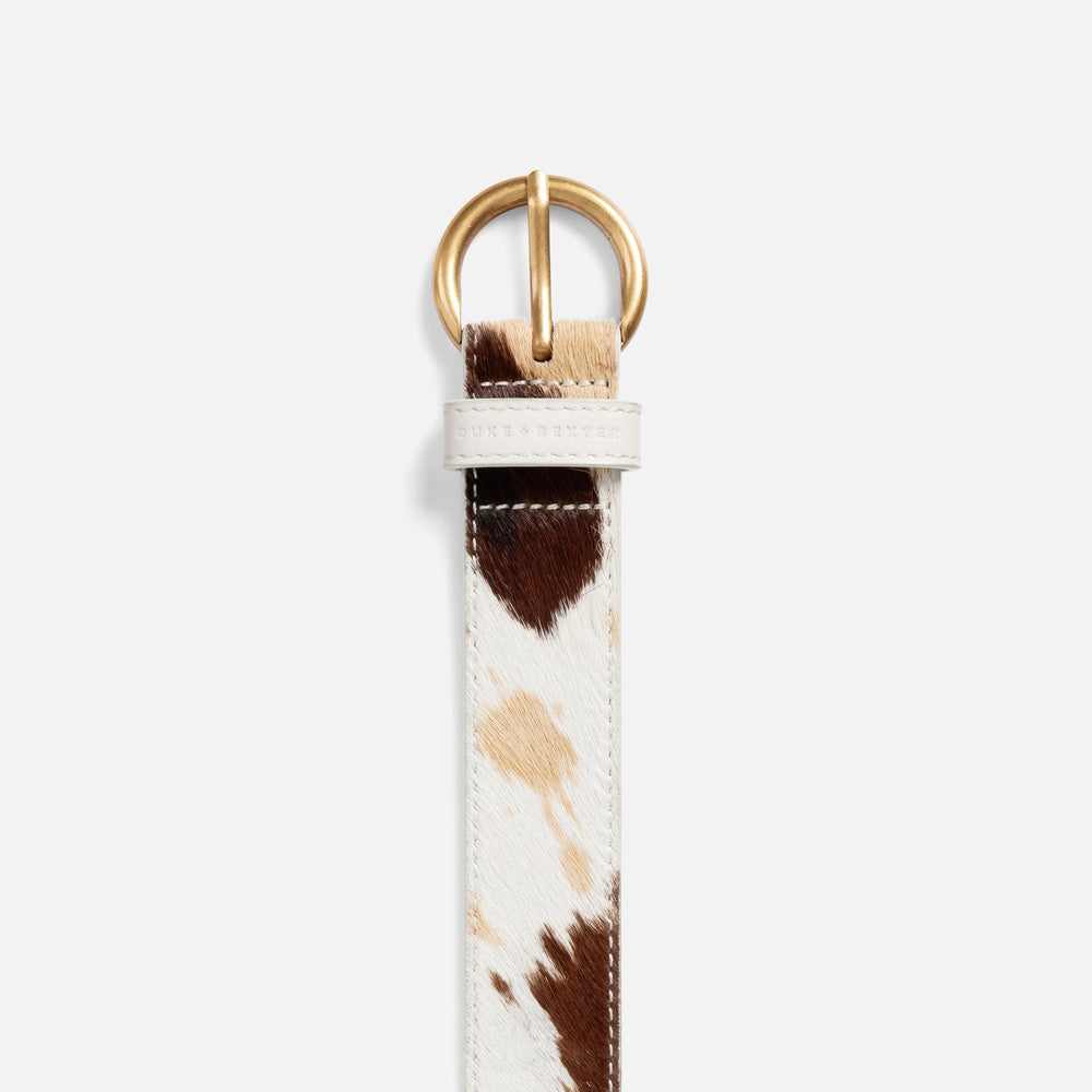 For Ace High, we’ve reimagined our signatures in a run of Western-inspired textiles, like croc-effect and faux snakeskin. With a tactile handfeel, this Ellis Belt is made from cow-print pony hair and has a rounded, gold-tone buckle.