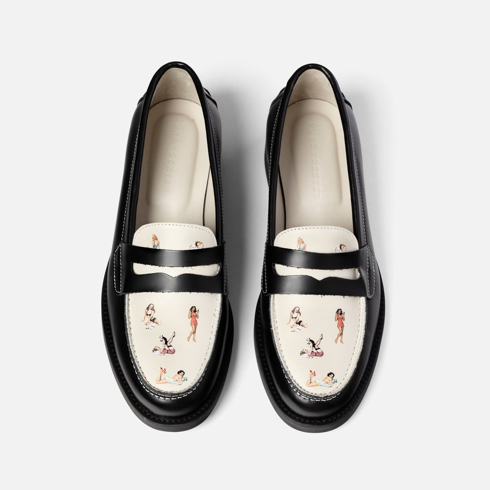 Our Duke Icons collection is a celebration of our signature motifs, from Kiss to Cherry. These Wilde Pin Up III Penny Loafers are printed with six different Pin Ups at the vamps, individually hand-drawn, placed and rendered by in-house artist, Jess. They’re handmade from duotone leather and traced with contrast stitching at the edges. The cushioned in-socks provide all-day comfort, too.