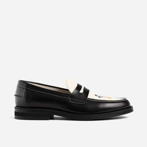 As part of our collaboration with Disney, these Loafers are our signature duotones with a twist – they’re printed with one of the most iconic characters of the past century. Centred with a frame of Mickey Mouse that we’ve reimagined from Disney’s archives, they’re handmade from black and white leather and set on prefabricated 25mm TPU soles for comfort and durability. Limited edition.