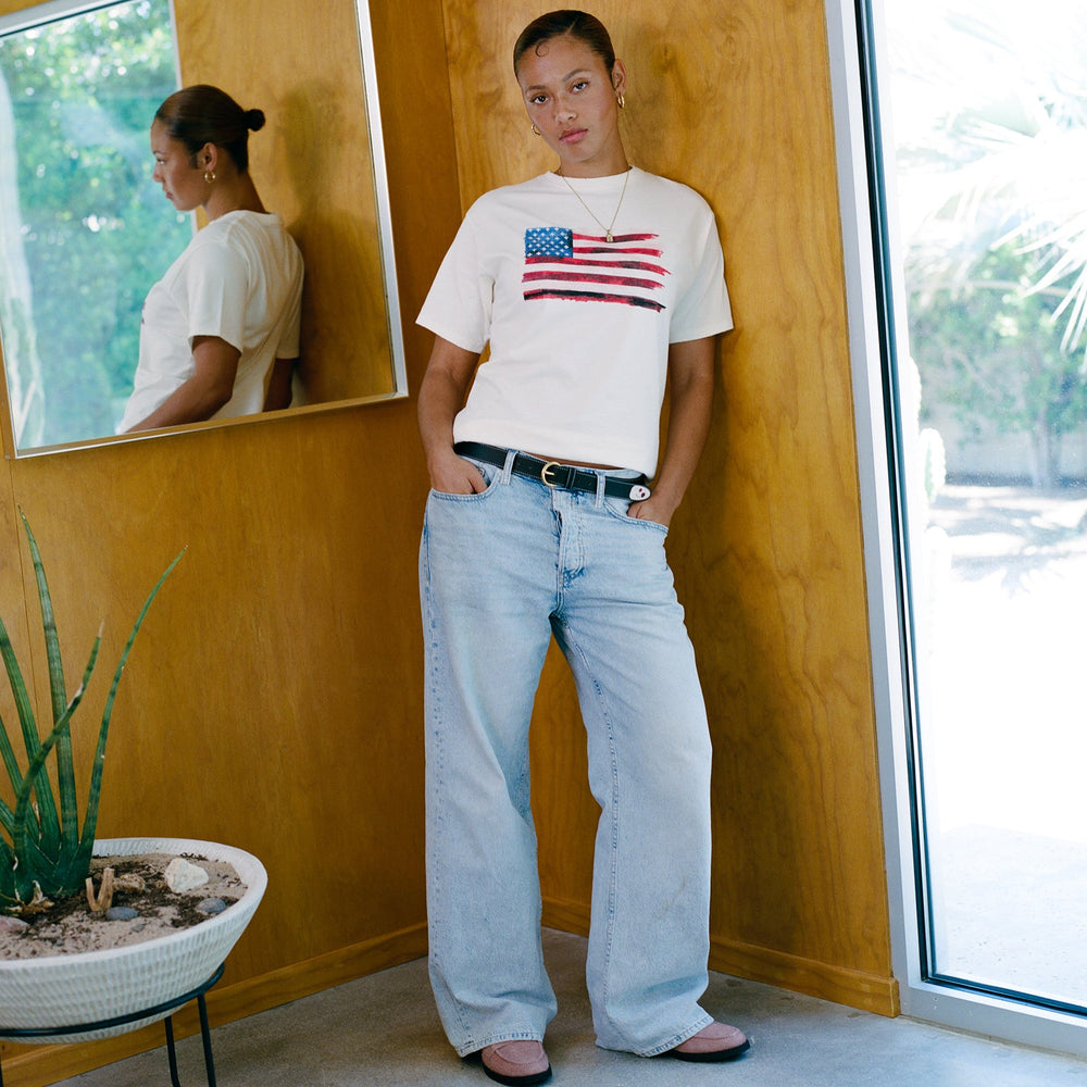 Our Ace High collection is a celebration of all things Americana. Part of the second drop, this Duke T-Shirt is screen-printed with our take on the stars and stripes, hand-painted by in-house artist, Jess. It’s made from washed-out 220GSM cotton-jersey and has a loose fit.
