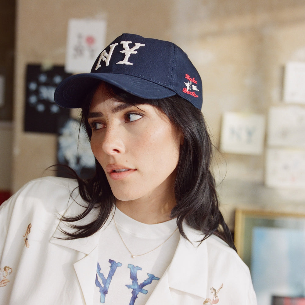 Our NY logo was first drawn with a marker pen before being translated to digital, print and embroidery. Seen at the front of this navy Duke Cap, it’s made from durable twill in a five-panel construction and features our vintage-style PLUS graphic on the side. Details include a padded headband and adjustable snapback strap.