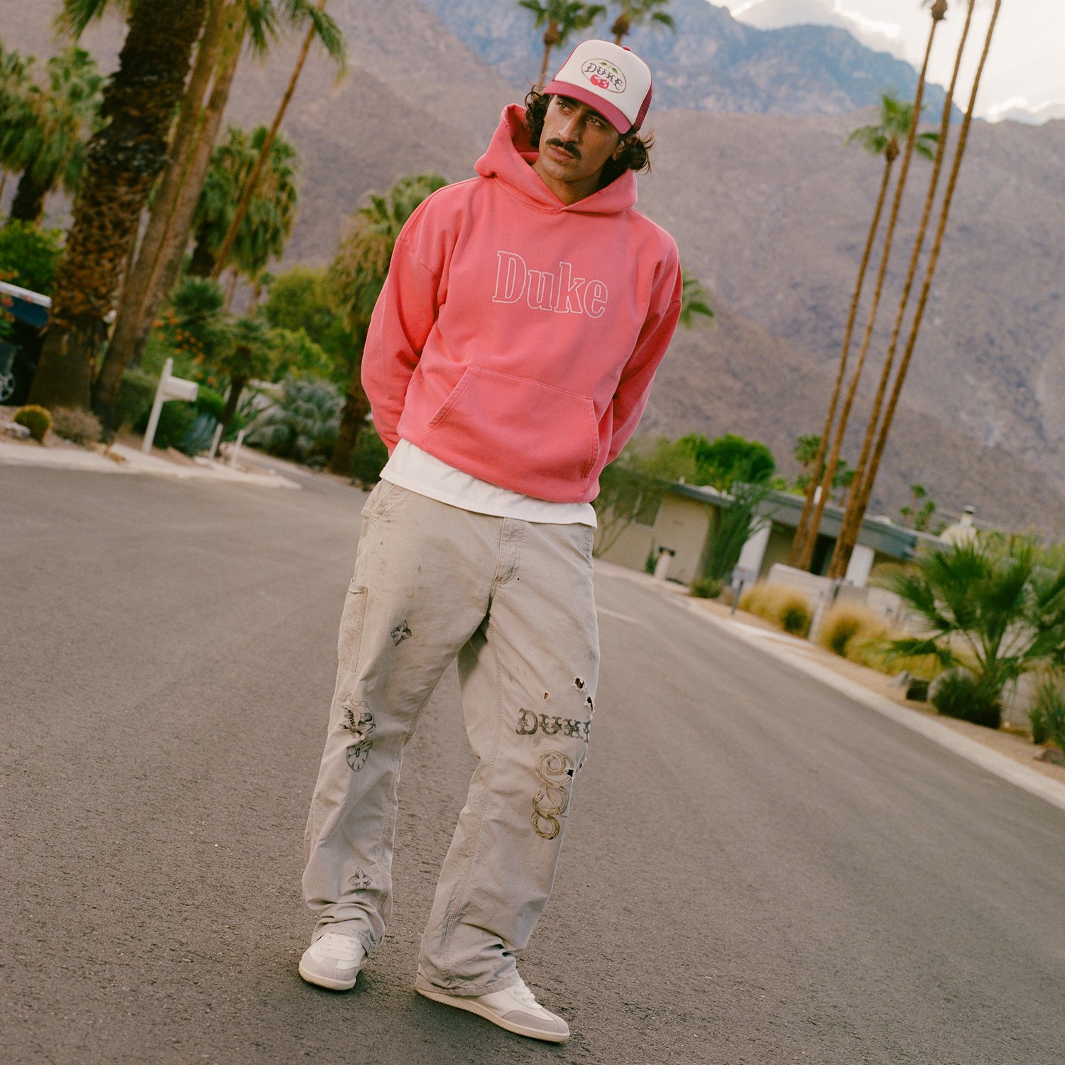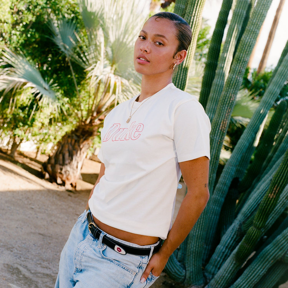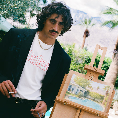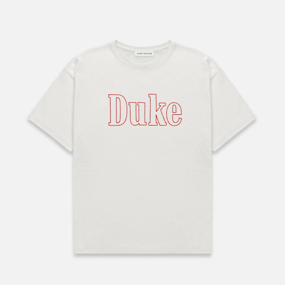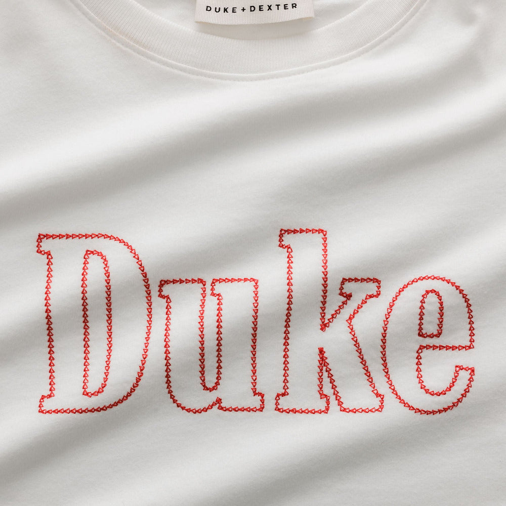 Our Vintage White T-Shirt is chainstitched with a red ‘Duke’ spell-out across the chest. It’s made from 220GSM cotton-jersey that’s washed for a vintage look and feel and has a relaxed fit.