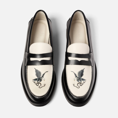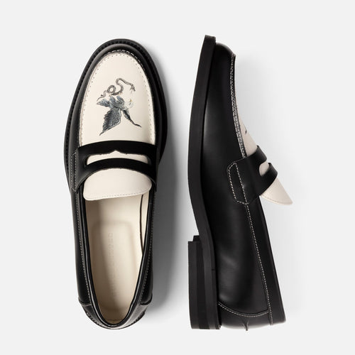 These Mexico Loafers are printed with an eagle and snake motif, designed by our in-house artist, Jess. Part of our collaboration with Peso, they’re made in Europe from duotone leather and have cushioned in-socks and a soft leather lining. The 25mm TPU soles have been custom developed for comfort and durability.