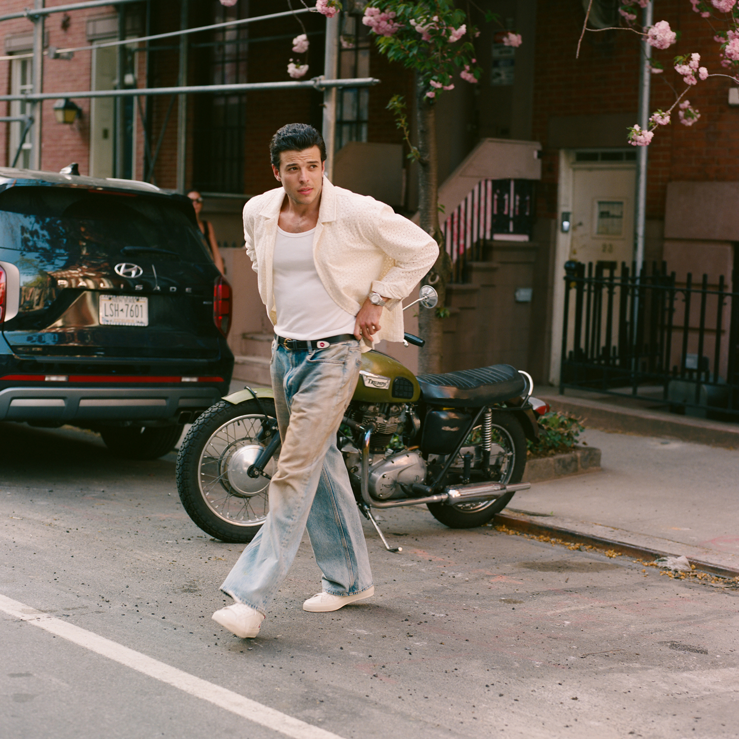 It’s panelled from Italian leather and set on off-white rubber cup soles for a subtle contrast. Details include mohair-style laces and a plush, toweling lining.