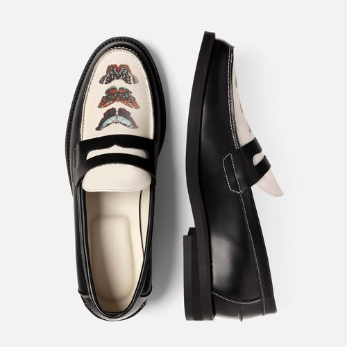 Each pair of Wilde Butterfly Loafers features a set of three stacked butterflies, designed and refined in-house before being printed into the loafer during production.