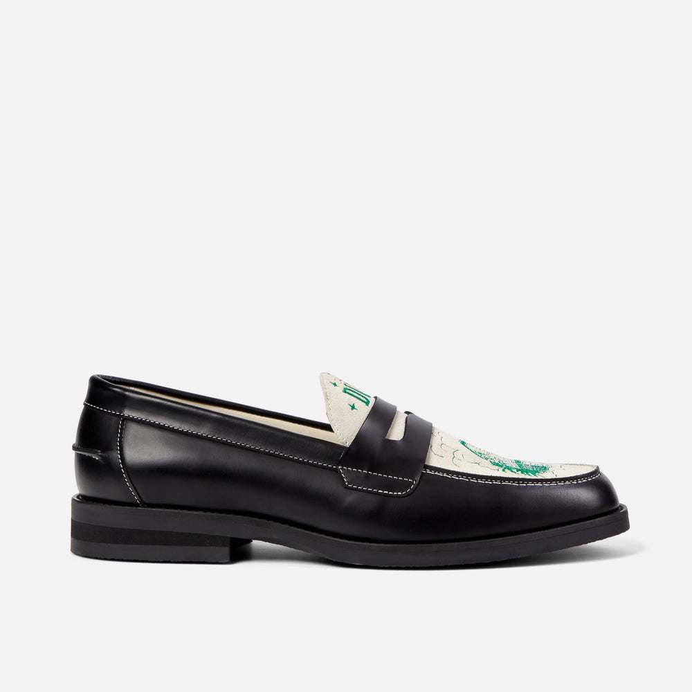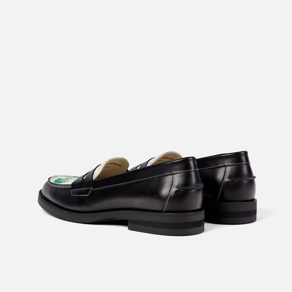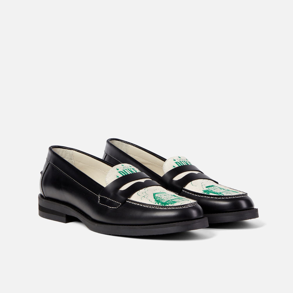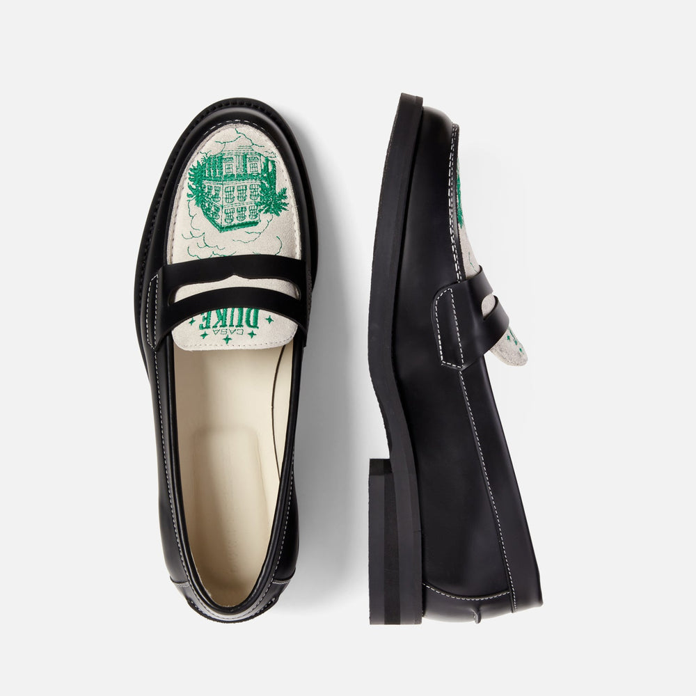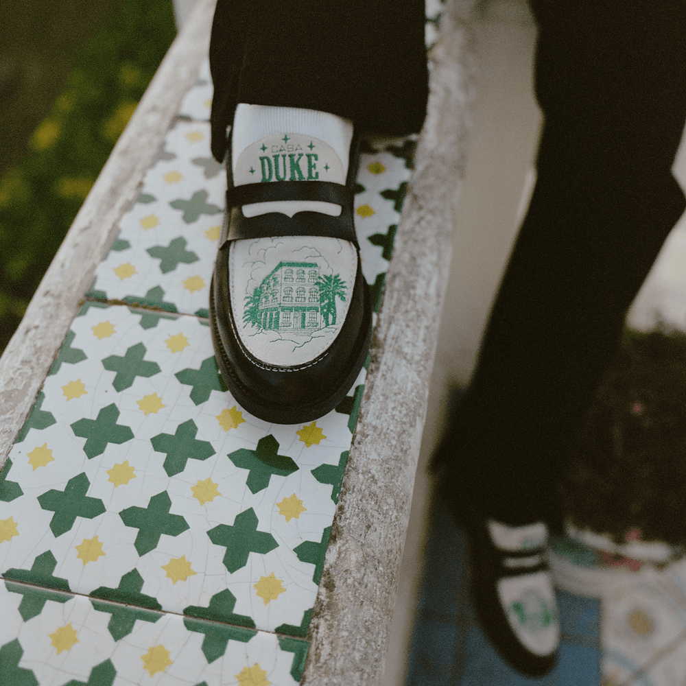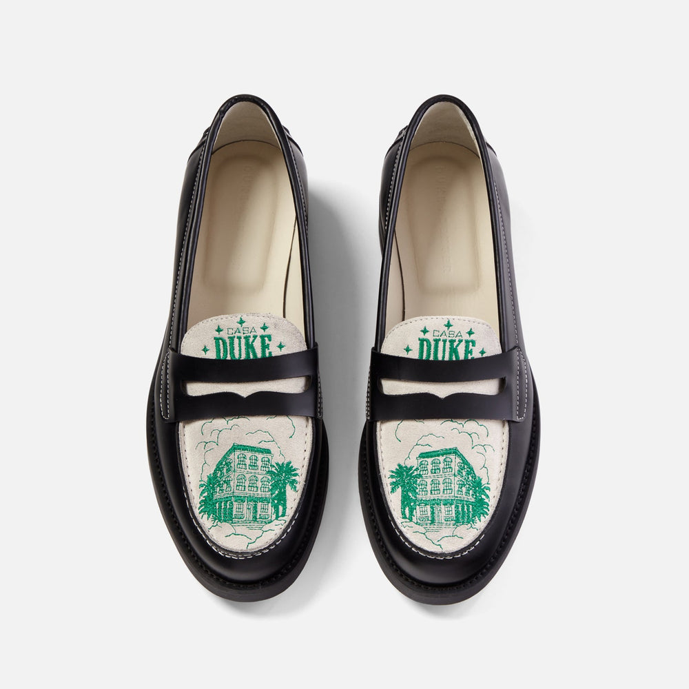 Our Wilde Loafers are embroidered with our very own hotel, Casa Duke, in threads of jewel-tone green. Like our signature duotones, they’re made from Black + White leather with a malleable lining and have soft, cushioned in-socks. The 25mm TPU soles have enough grip to wear by the pool.