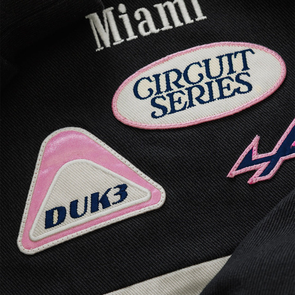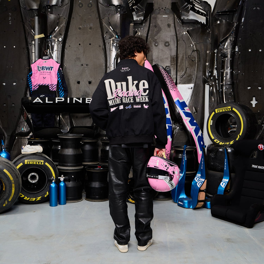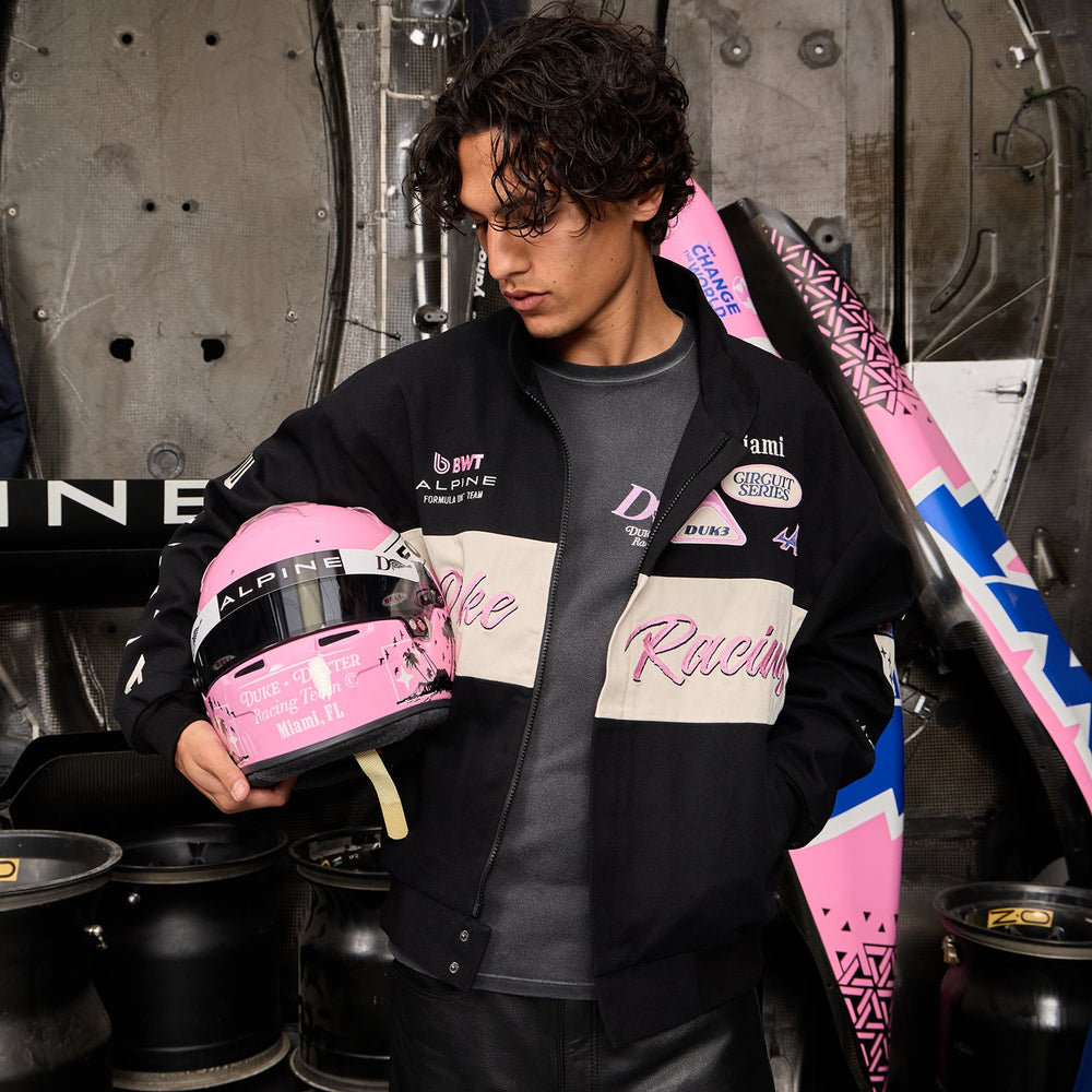 Our collaboration with Alpine F1 is a tribute to motorsport, with hand-drawn, vintage-style graphics throughout. Featuring tees, jackets and sneakers, screen-printed with designs from our in-house artist Valentino, and signature spell-outs.