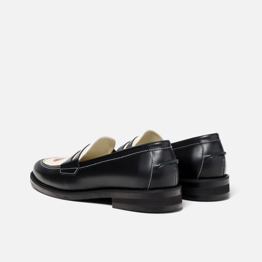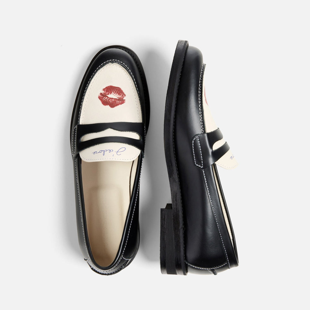 With contrasting shades of off-white and black, these women’s penny loafers have been handmade in Europe, and feature a custom kiss print to the vamp. Kitted out with our custom-made TPU sole that’s designed for year-round wear, they’re lined in leather that shapes to your foot as you wear them.