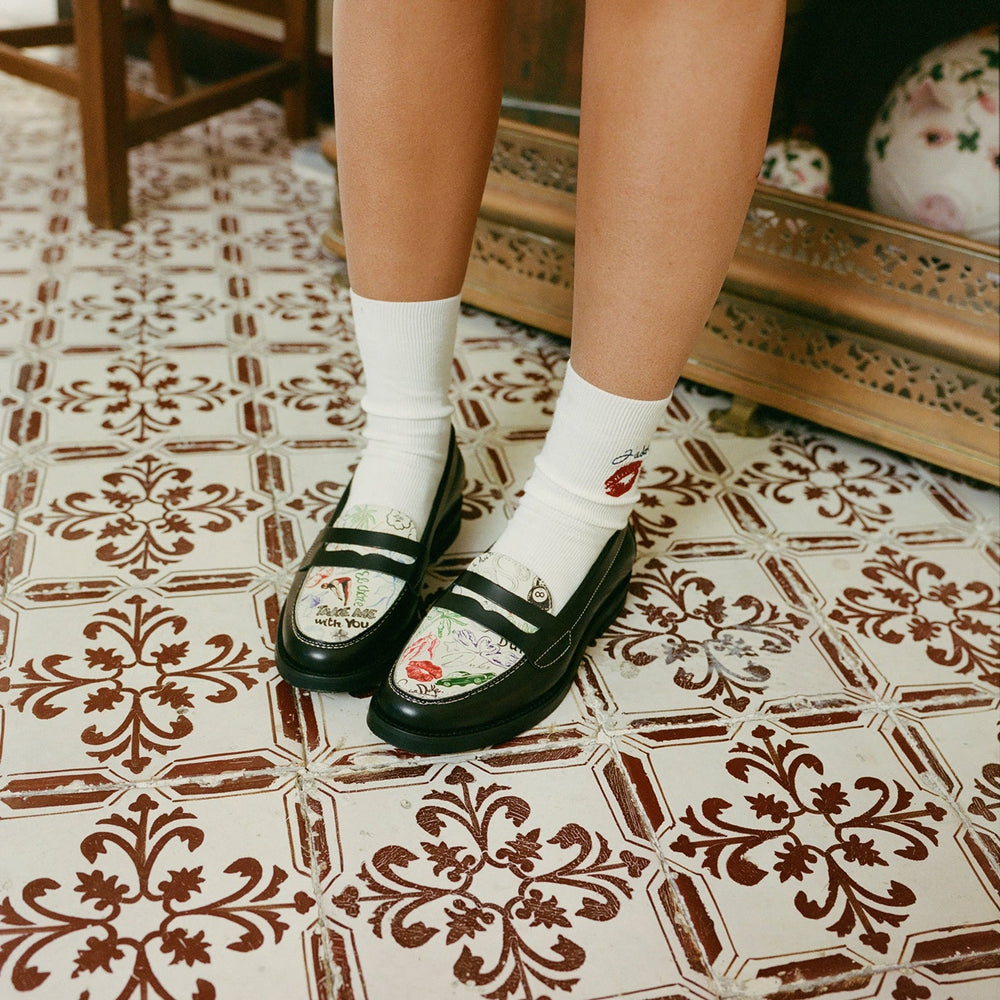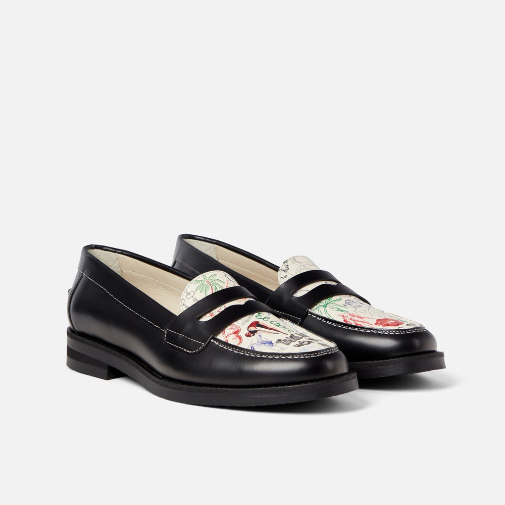 Part of Duke Sketch, our Wilde Penny Loafers are covered in summer-inspired graphics from our in-house artist, Jess. They’re handmade from premium leather with a matching lining and come in our signature duotone colourway, Black + White.