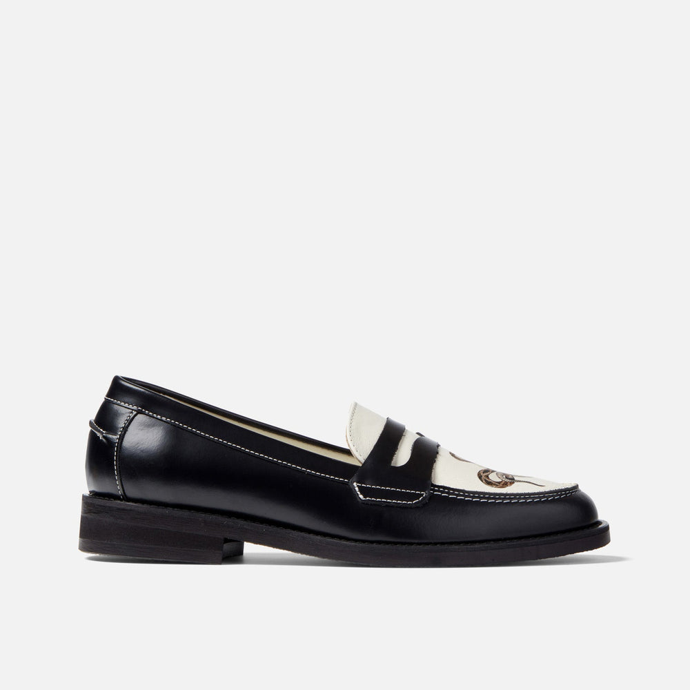 Reptilian fancy, each pair of Wilde Snake Penny Loafers is based on a design pulled from our in-house specialist’s studio recreated as a digital print. Featuring a familiar serpent, our handmade Italian leather Penny Loafers are bringing the animal kingdom to your rotation.