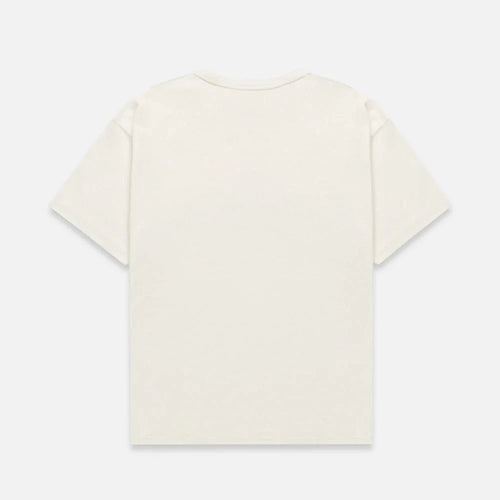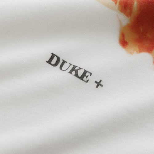 Detail Lightweight cotton slub t-shirt with a vintage wash and smoke staining. Artwork is a water based screen print on the front