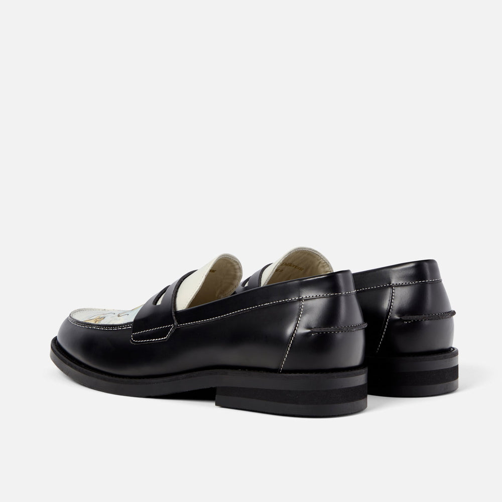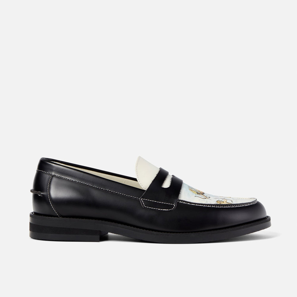 Donatello. Raphael. And now, D+D. Following in the footsteps of Fall of Giants and Advanced Guard, our Cherub Loafers are printed with full-scale, fine-line artwork at the vamps. Like our duotones, they’re made in Europe from black and white leather and threaded with contrast stitching at the edges. And, if you look inside, you’ll notice the cushioned in-socks are decorated with hand-drawn clouds to match the graphics on the toes. Limited to 80 pairs worldwide, with no restock.