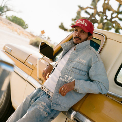For Ace High, we’ve reimagined our signatures in a run of Western-inspired textiles, like croc-effect and faux snakeskin. With a tactile handfeel, this Ellis Belt is made from cow-print pony hair and has a rounded, gold-tone buckle.