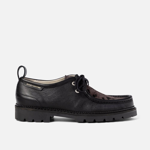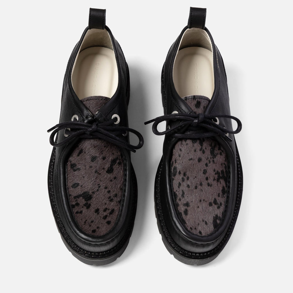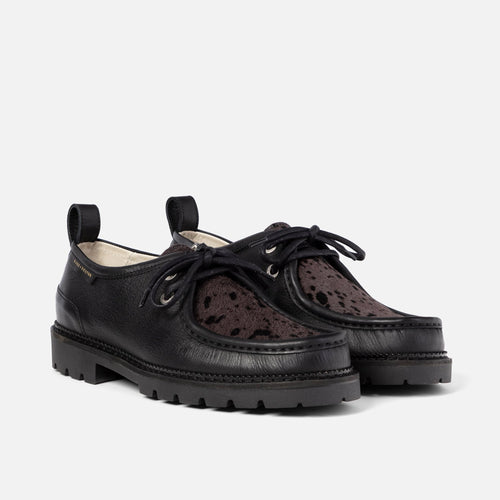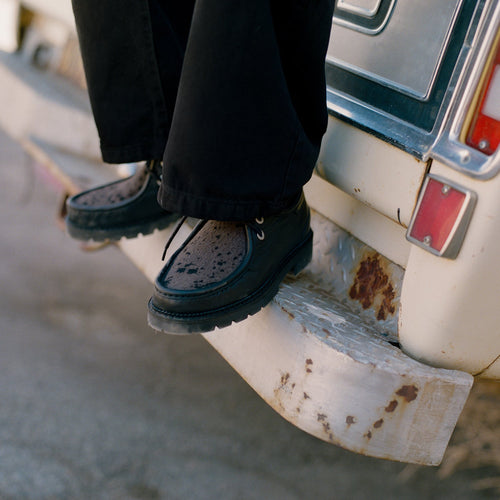 As part of our Ace High collection, we’ve reimagined our Moby Boots in a number of Western-inspired fabrics, like faux snakeskin and pony hair. This Black pair is made from contrasts of Italian leather and pony hair and has crimped uppers and rubberised commando soles. It’s finished with cotton laces, cushioned in-socks and a pull tab at the heel.