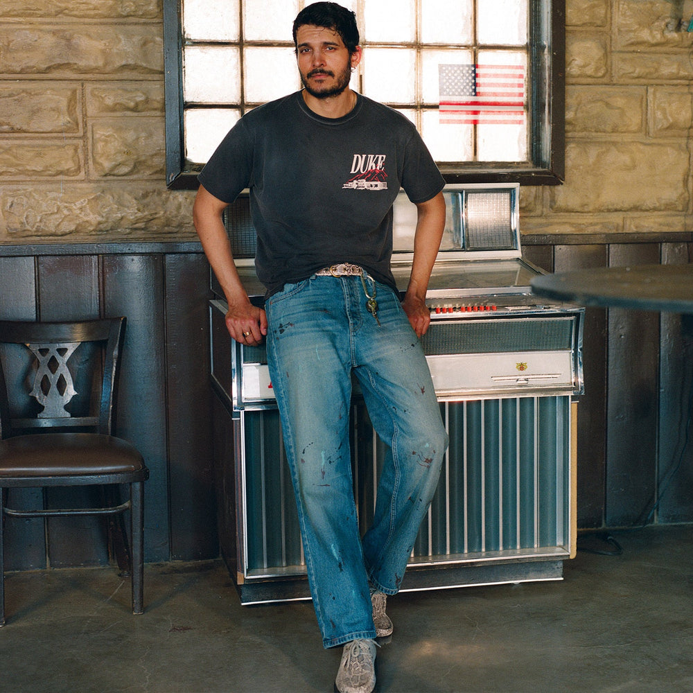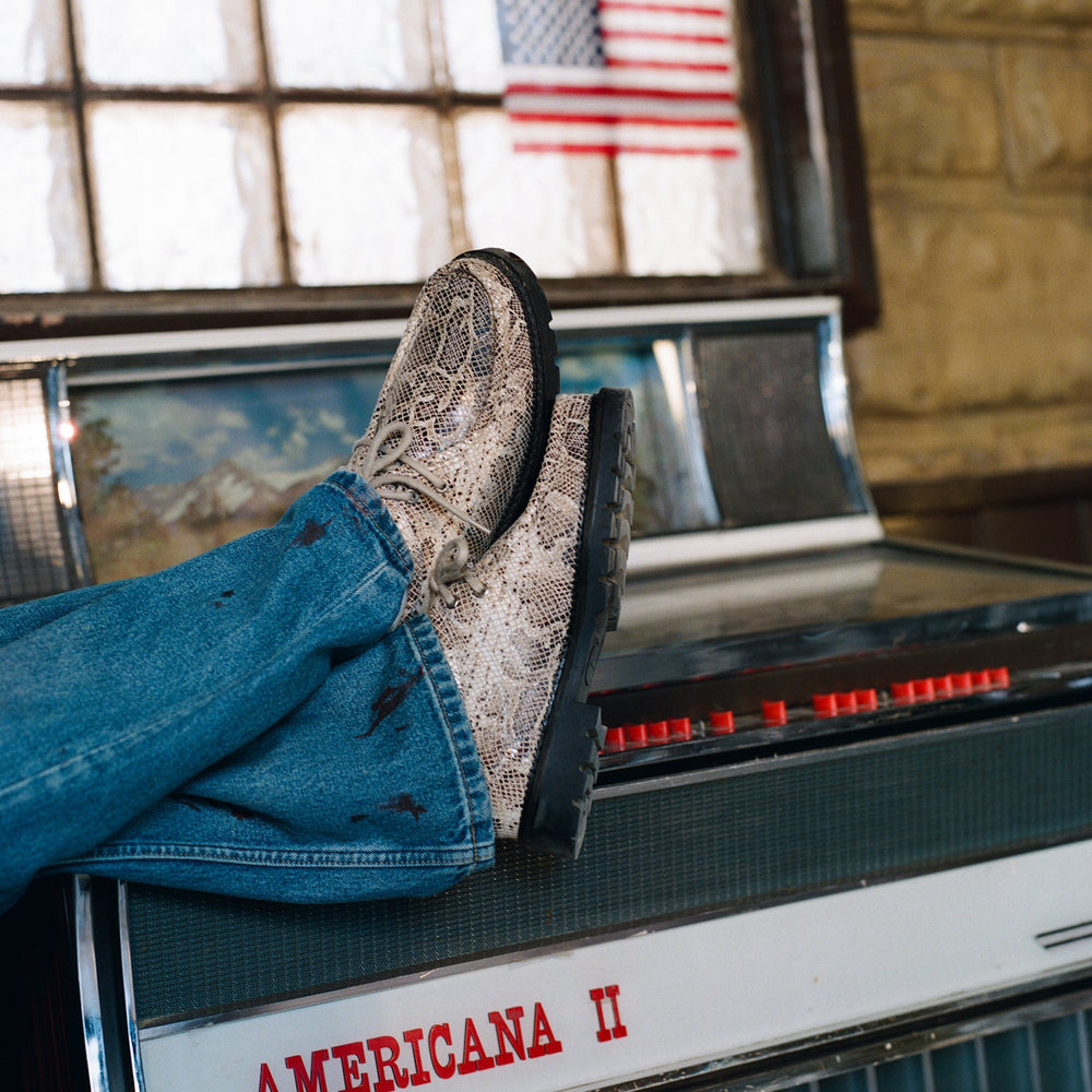 Ace High is an ode to the American West. Featuring footwear, apparel and accessories, updated in Western-inspired textiles like cow-print, pony hair and snake-effect leather and printed with ranch and rodeo-themed artwork from in-house artist, Valentino.