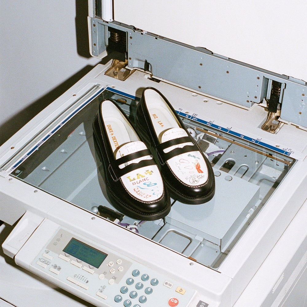 Our exclusive capsule with Rizla features deep cuts from the archives, customised by our in-house artists Jess and Valentino, and screen-printed on loafers, cardholders and smoke-stained tees and hoodies.