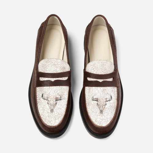 Wilde Cracked Bison Skull Penny Loafer - Men's