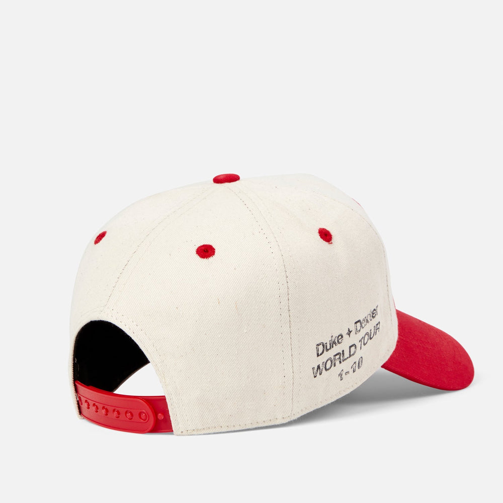 Duke World Tour is a celebration of the places that shaped us, from Miami to Marrakech. Part of the offering, this tour-inspired trucker cap is made from panels of red and white canvas and detailed with logos at the front and on the sides. For added comfort, it’s fitted with a padded headband and adjustable strap.