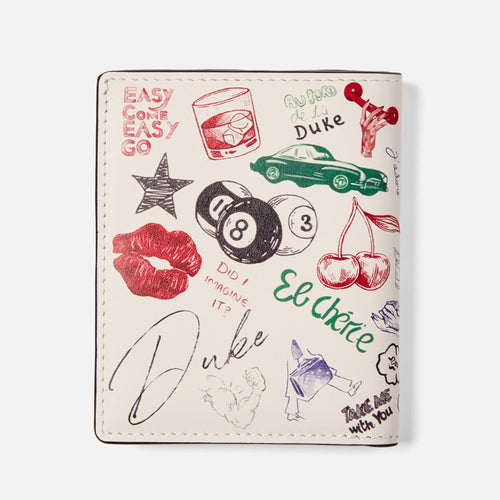 Part of Duke Sketch, the Dean Wallet is screen-printed with hand-drawn illustrations by our in-house artist, Jess. It’s made from black and off-white leather and opens to reveal six card slots and two pockets for notes and receipts.
