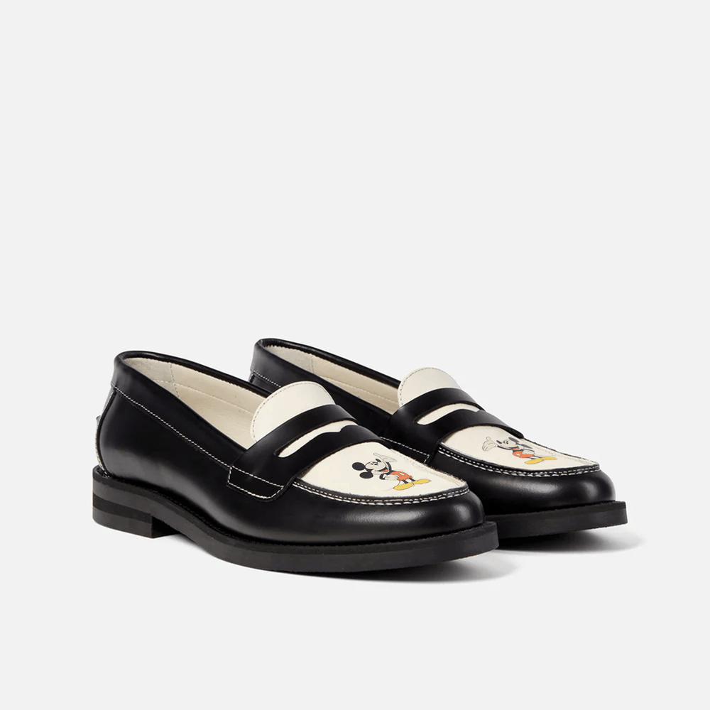 As part of our collaboration with Disney, these Loafers are our signature duotones with a twist – they’re printed with one of the most iconic characters of the past century. Centred with a frame of Mickey Mouse that we’ve reimagined from Disney’s archives, they’re handmade from black and white leather and set on prefabricated 25mm TPU soles for comfort and durability. Limited edition.