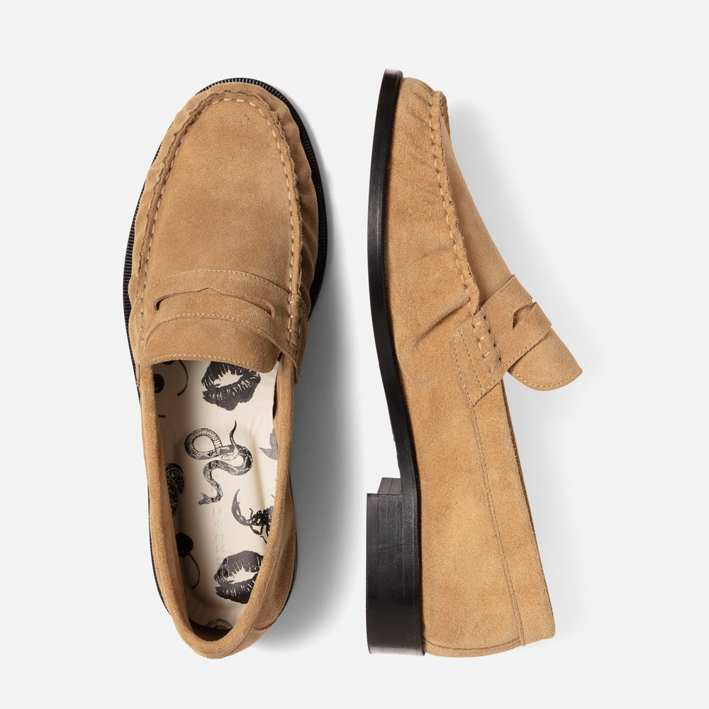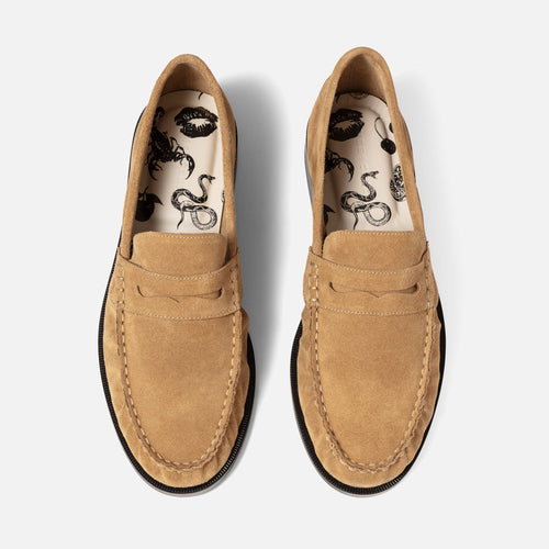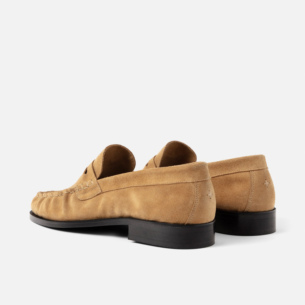 Ezra Tan Suede Pleated Penny Loafer - Men's