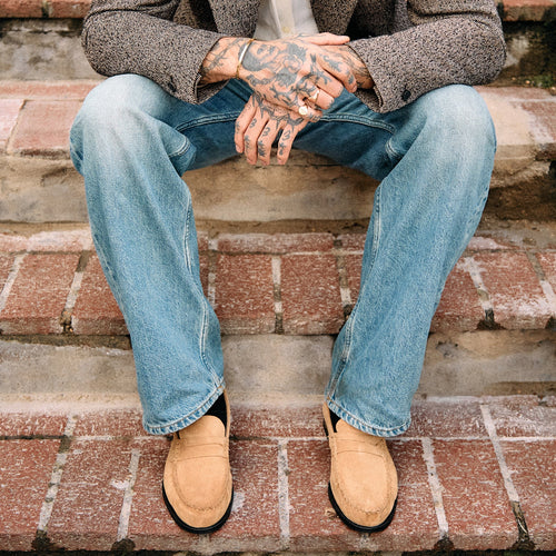 We’ve removed the liner from our Ezra Tan Loafers, so they feel as soft as they look. Pleated at the aprons, they’re handmade in Europe from plush suede and constructed in a low-profile shape, with rubber, Blake-stitched soles. Details include custom, cushioned in-socks and a tonal Plus stitch at the heels.