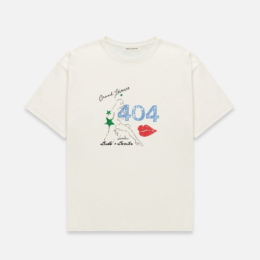 Our Grand Leisure T-Shirt is screen-printed with nods to the brand's history, like the icons, Kiss, Pin Up and Plus Star, and ‘404’ – the numbers you’d punch to get D+D on a keypad. It’s made from washed-out cotton-jersey and fits relaxed, with dropped shoulders to exaggerate the shape.