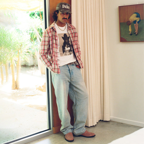 This Custom Cap is limited to 3 units only. An ode to our Ace High campaign, it’s hand-painted with the collection’s name in Old English lettering and constructed from five panels of washed and distressed cotton-twill. Customised with D+D icons, hand-punched studs and 3D embroidered ‘DUKE’ across the crown, it features a soft, padded headband and an adjustable snapback strap.