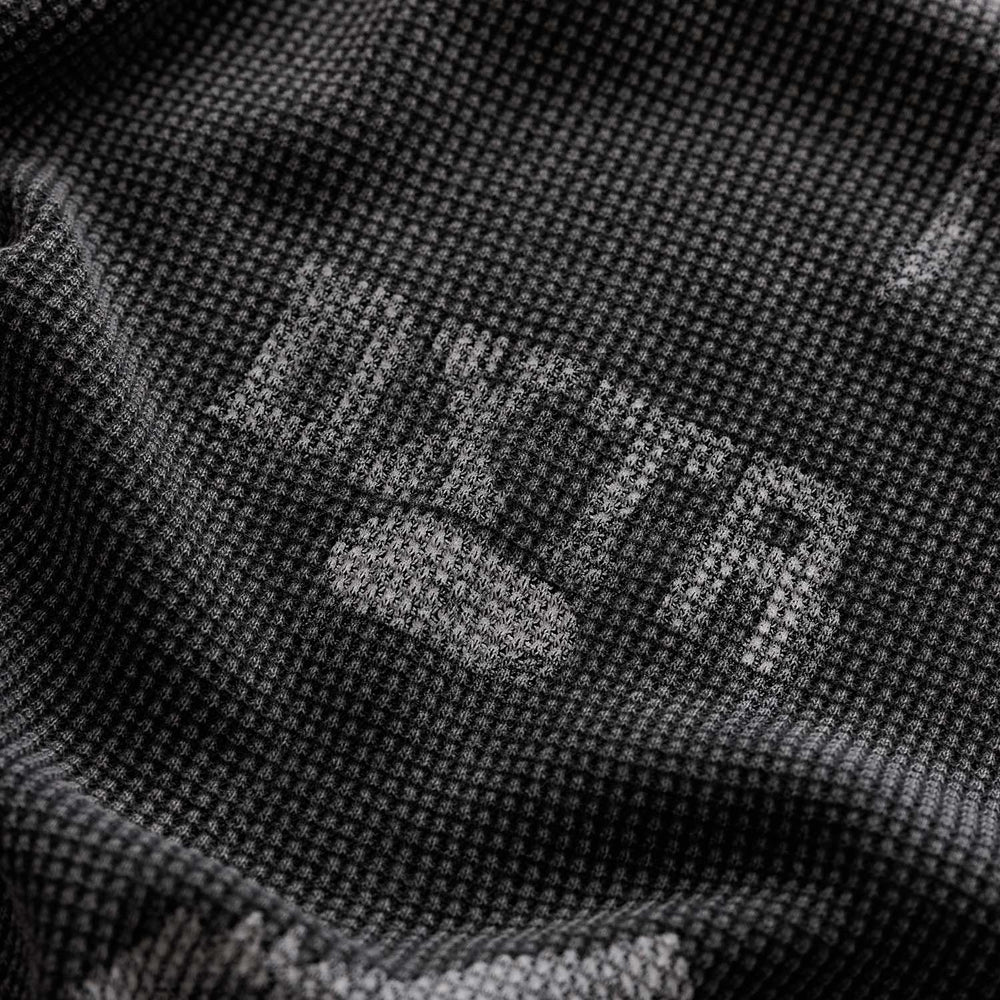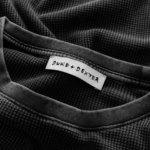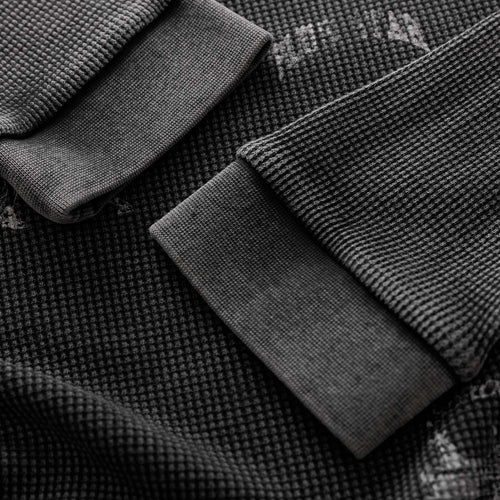 Detail Knitted waffle. Vintage wash. Screen printed