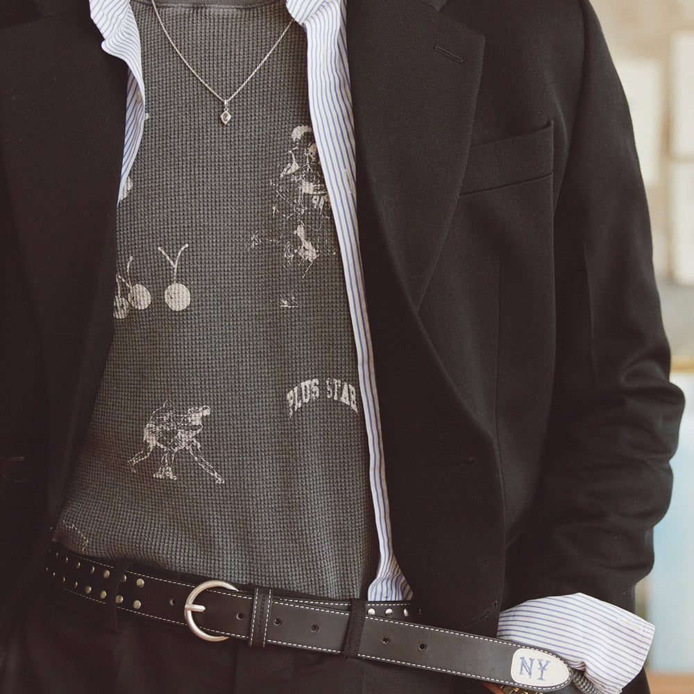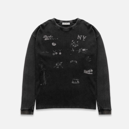 NY Sketch Washed Grey Waffle Top