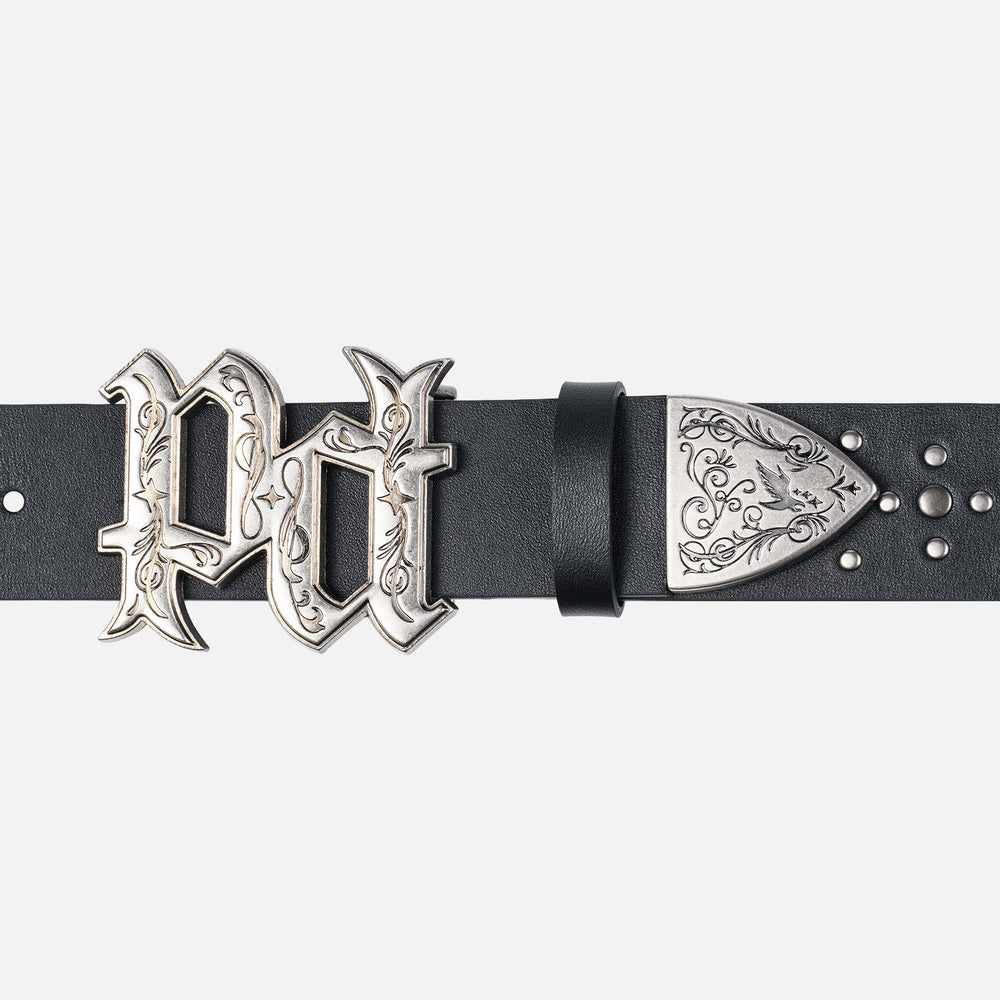 From the D+D X Peso collection, this Black Belt is covered in silver-tone studs from the loop to the end tip. It’s made from black leather and has an etched buckle, cast to resemble ‘P’ and ‘D’.