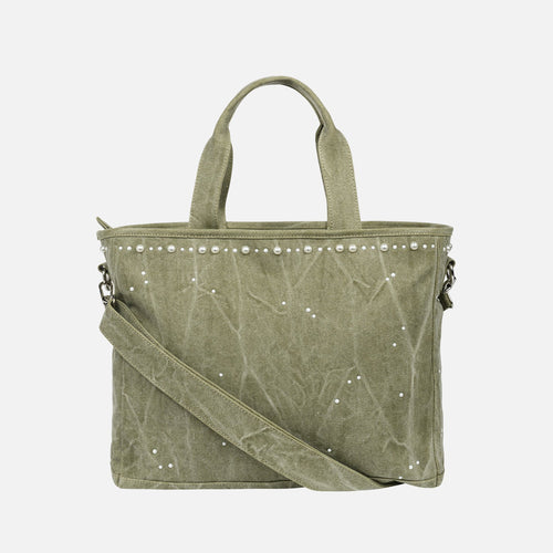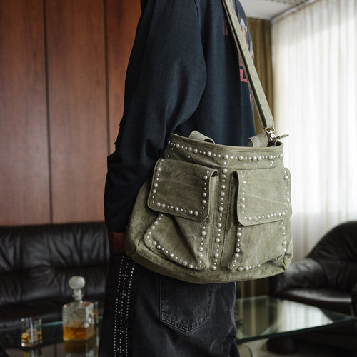 Detail Washed fabric for an aged look and soft feel. Magnetic flap pockets. Removable adjustable strap