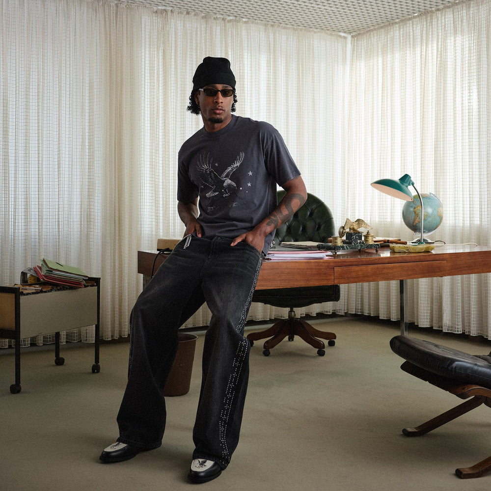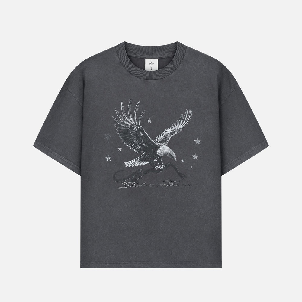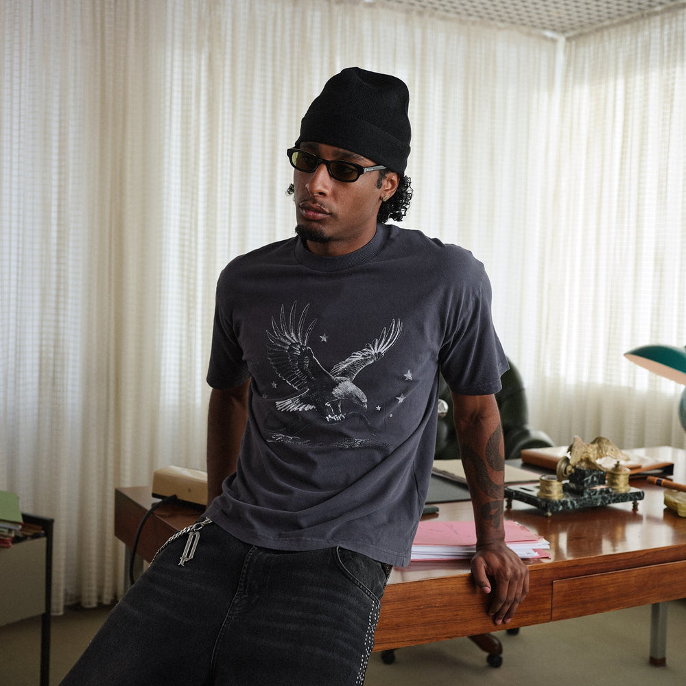 Our Black Vintage T-Shirt is printed with an eagle and snake graphic, designed by the team at Peso. It’s cut for a relaxed fit from 220GSM cotton-jersey that’s washed for a worn-in look and feel and embellished with subtle black studs.