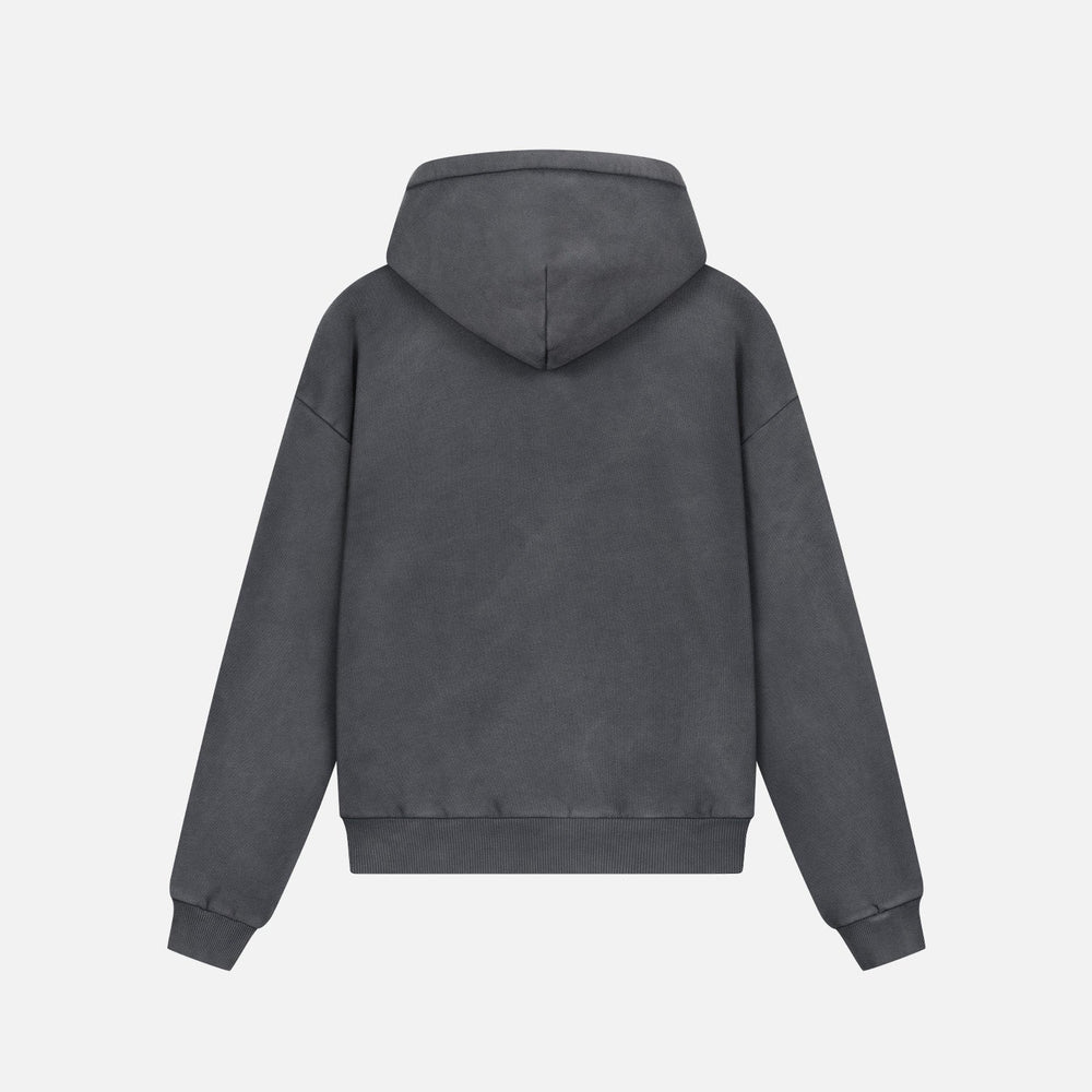 Detail Pearl beading on the front of the hoodie and the drawstrings. Aged zip Packaging All our packaging is made from recycled materials