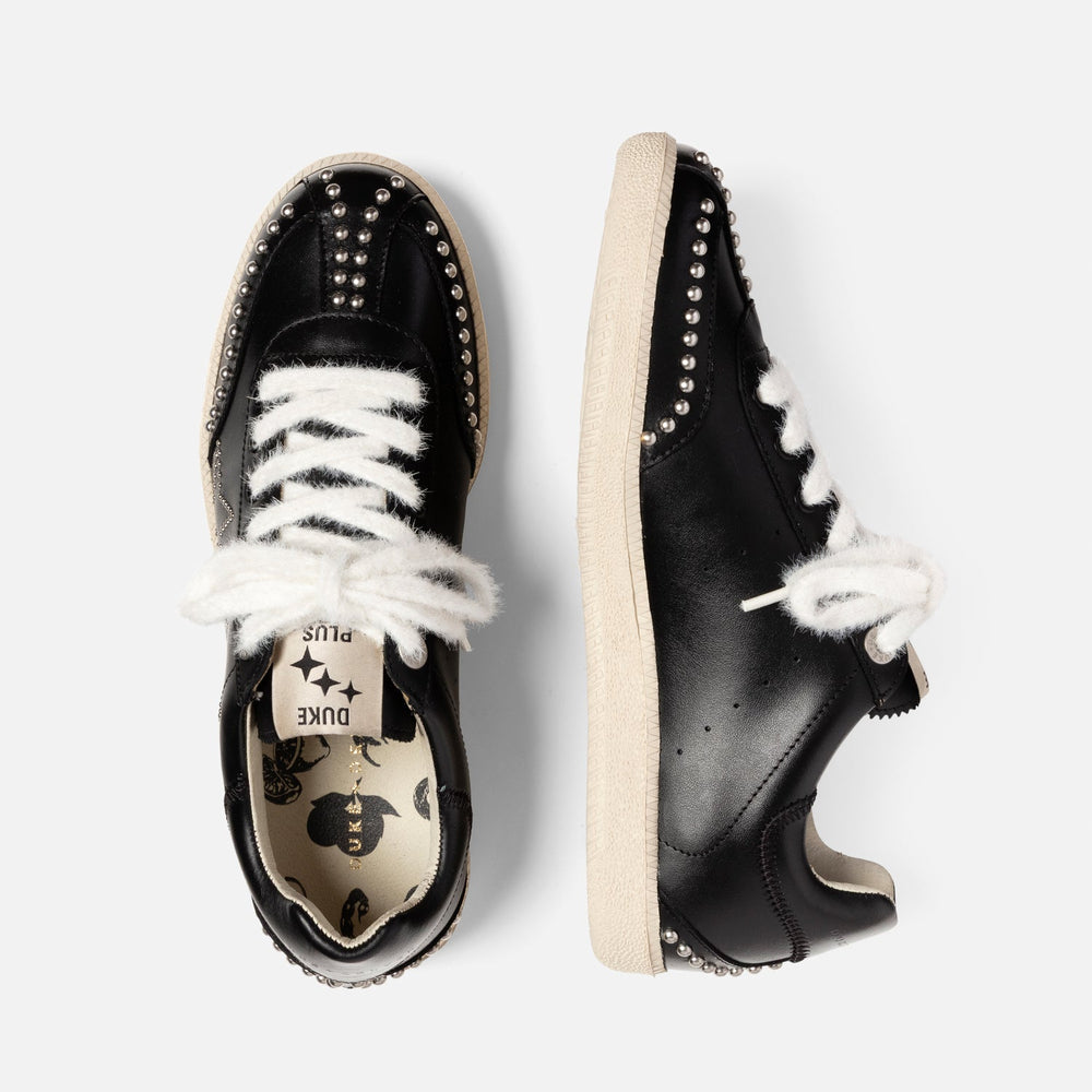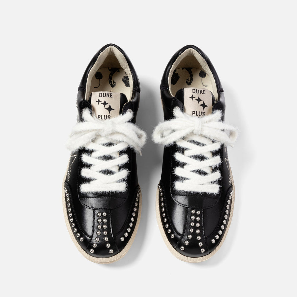 Our Ace High collection is inspired by the style of the American West. Part of the offering, these Plus Duke Sneakers are made from panels of black leather and pressed with silver-tone studs, just like traditional Western boots. They’re finished with mohair-style laces, contrast soles and removable tongues.