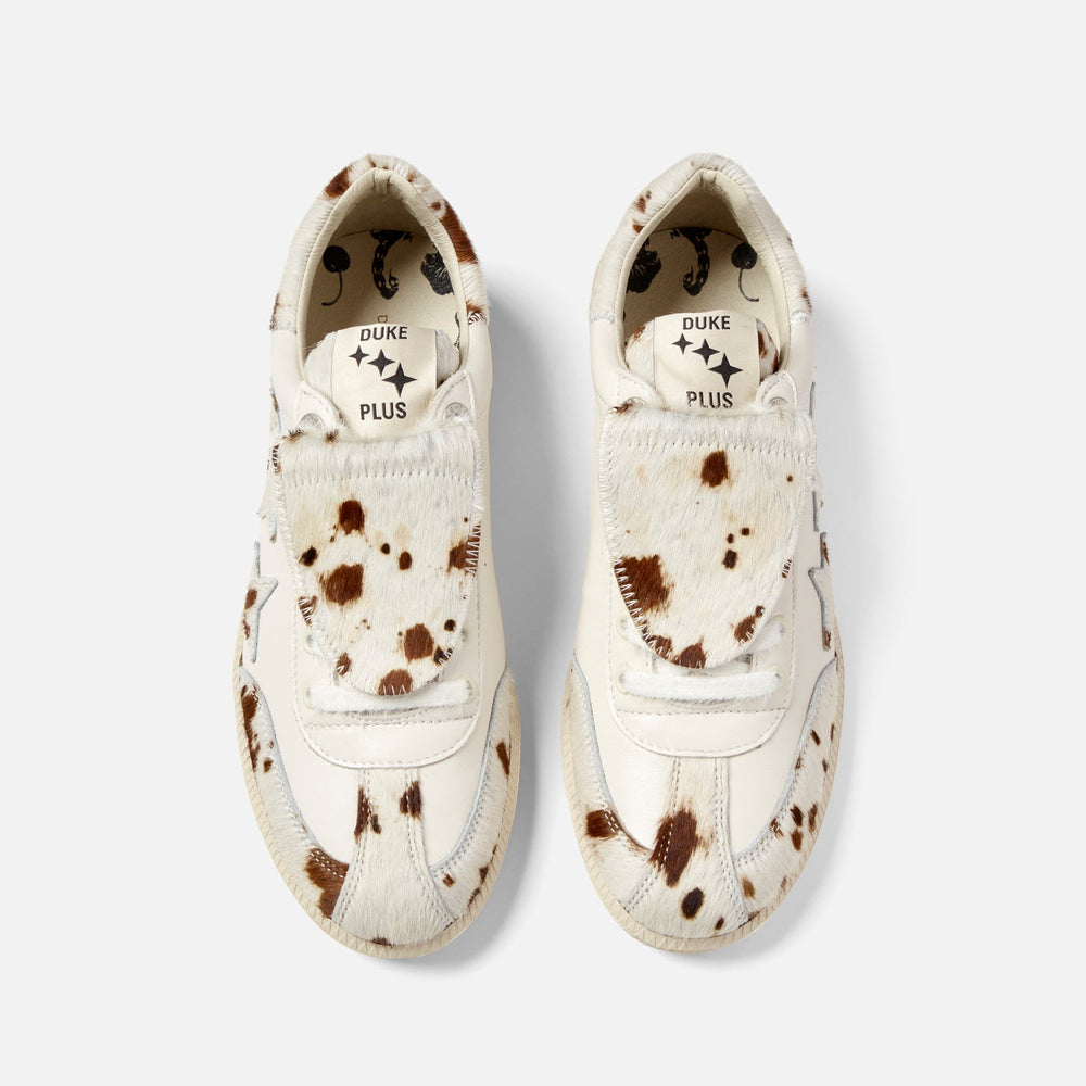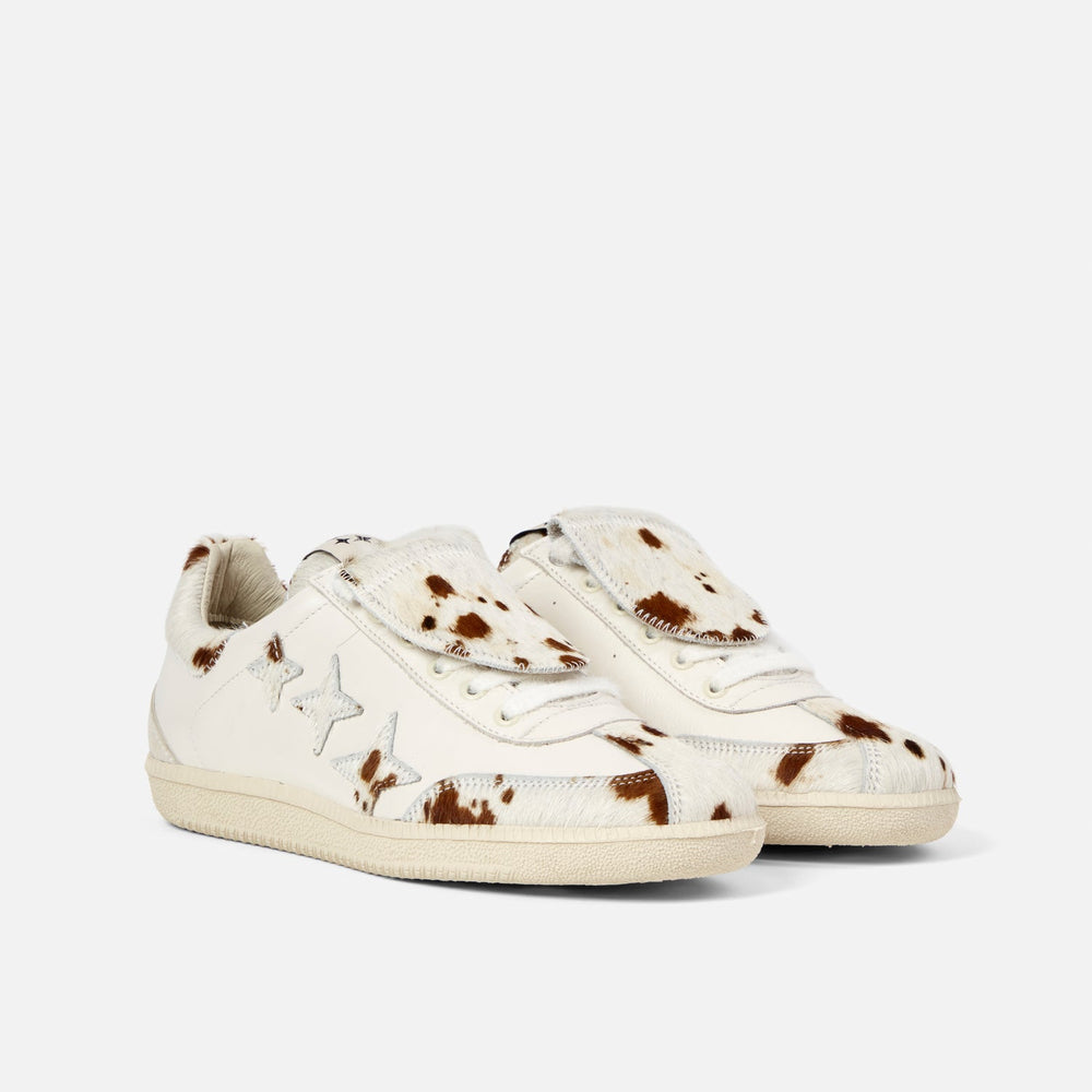 Ace High is an ode to the American West. Featuring footwear, apparel and accessories, updated in Western-inspired textiles like cow-print, pony hair and snake-effect leather and printed with ranch and rodeo-themed artwork from in-house artist, Valentino.