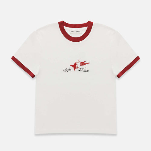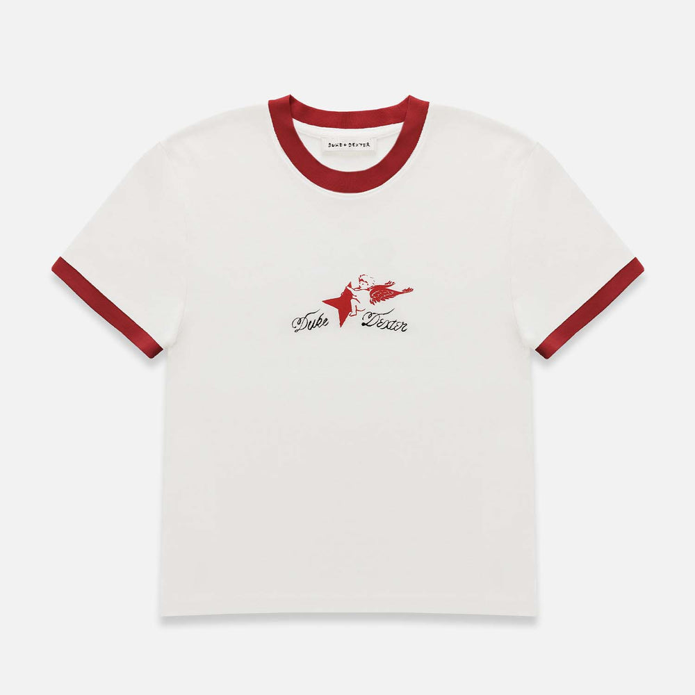 This Baby Tee is a play on the ringer styles of the ‘70s and ‘80s. Printed with an all-new version of our Plus logo, it’s made from soft cotton 1X1 rib and cut in a slim, body-hugging shape.