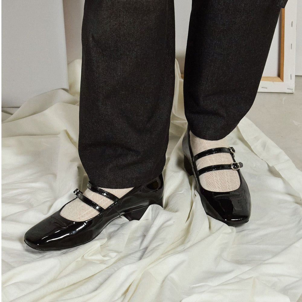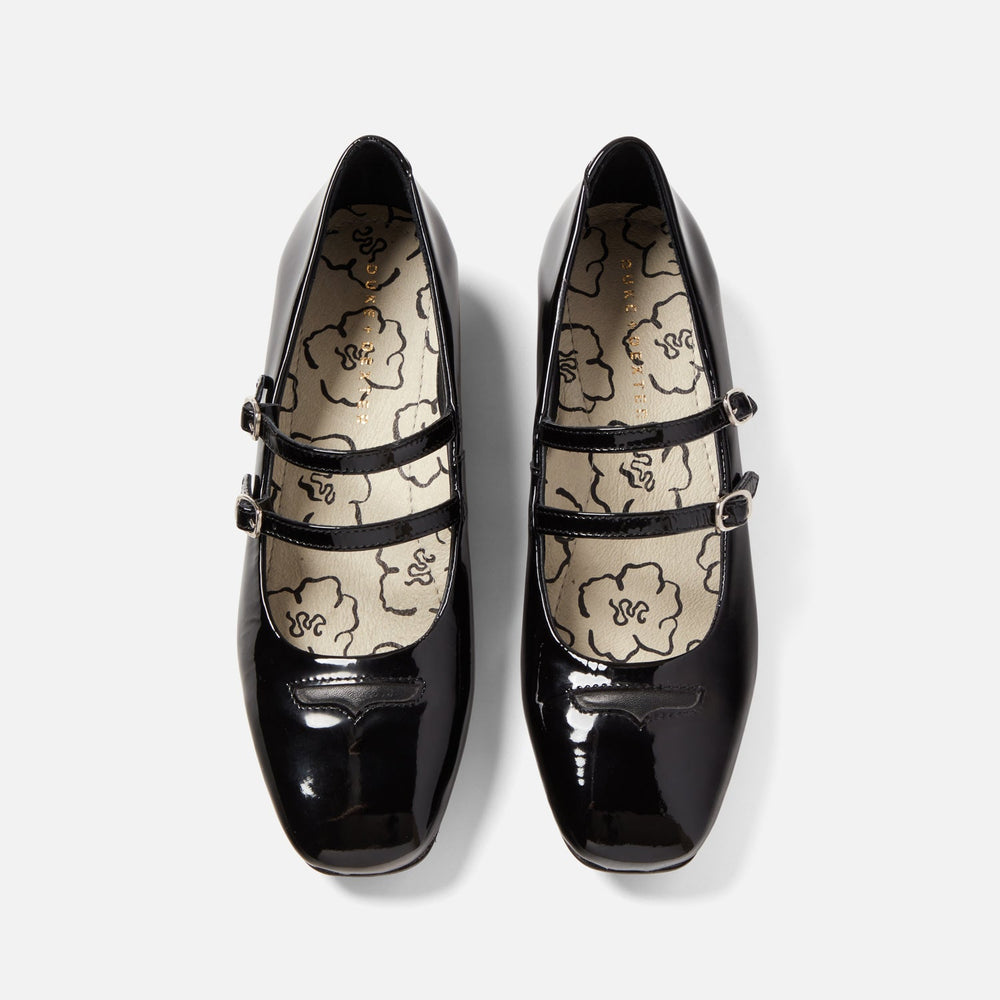 The Women's Ruby Black Patent Mary Jane is a part of our SS25 Floral Pack. Sat atop a 25mm neolite sole underfoot.