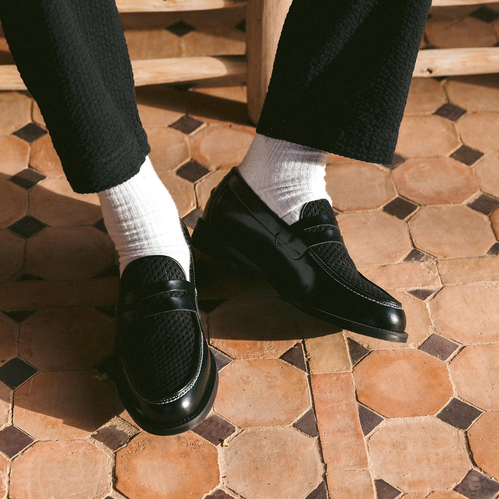 Inspired by traditionally woven rattan furniture, the Wilde Rattan Penny Loafer replaces your classically wicker-skewed weave with 100% cotton crochet - a style popularised in Morocco, handwoven by gifted native craftspeople up in the Atlas Mountains. Each pair features a traditionally Bohemian-styled vamp and an Italian leather lining.