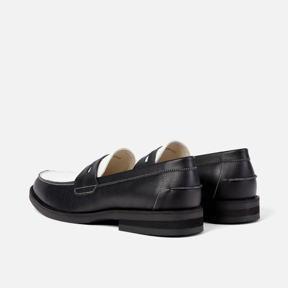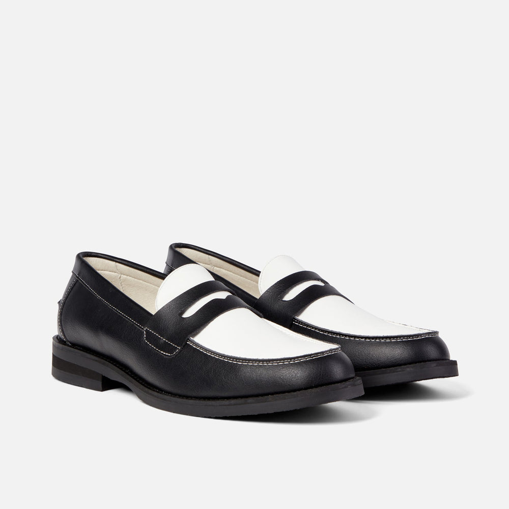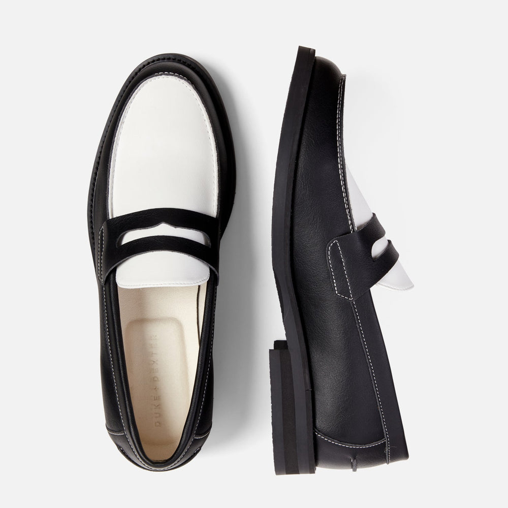 A long time coming. You asked over and over and over again. We were listening - but, we wanted to make sure that they were perfect. We wanted to make sure that each pair would represent the level of quality that we're known for. And, here we are - the Wilde Black + White Vegan Penny Loafer. Featuring a 25mm prefabricated TPU sole and poly based faux leather.