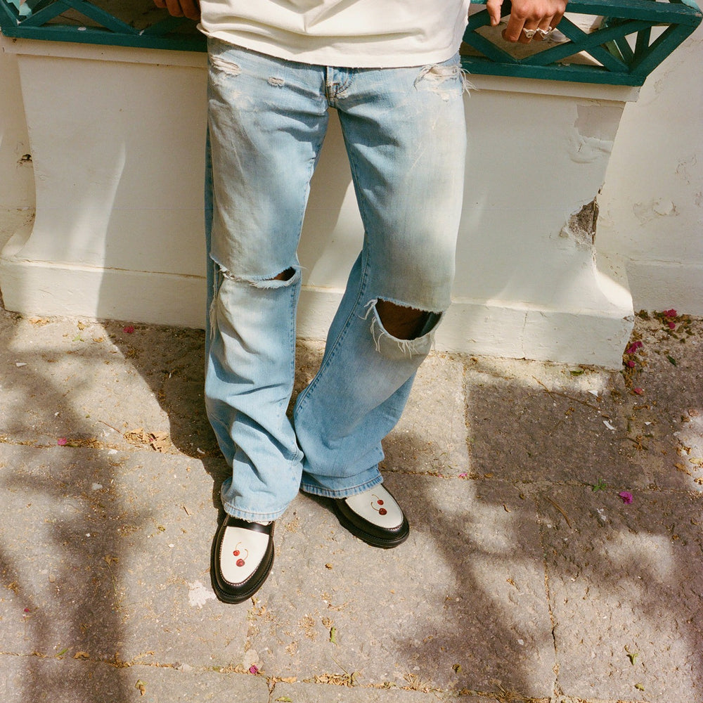 Now available men’s sizes, a digitally printed original. The Wilde Cherry Penny Loafer.