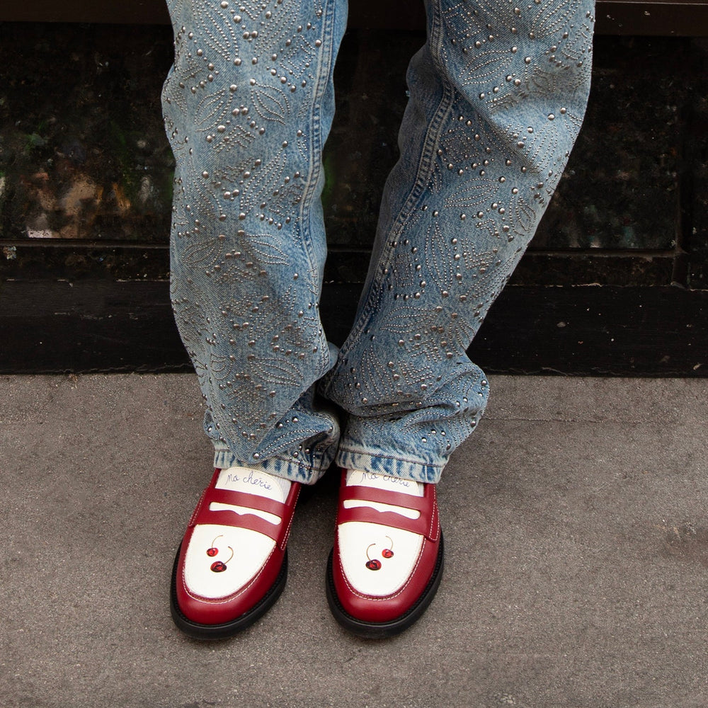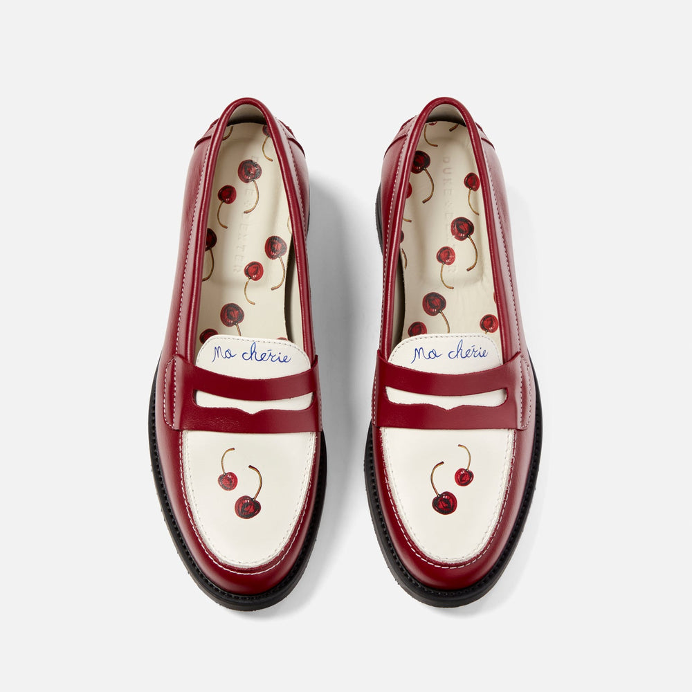 Our Cherry Loafers are panelled with red leather to match the ‘ma chérie’ graphics at the vamps. Made in Europe, they’re fully lined in Italian hide and have cushioned in-socks for added comfort. The contrast stitching adds to their vintage look and feel, too.