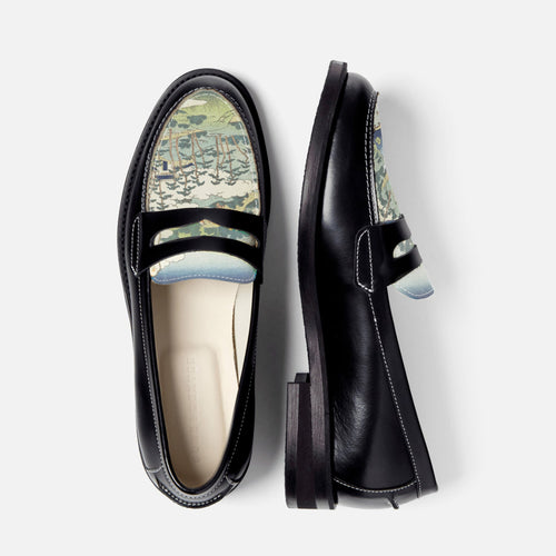 By pulling inspiration from Katsushika Hokusai’s ‘Eight Views of the Ryūkū Islands’ series, the Wilde Sacred Spring Penny pays tribute to The Sacred Spring at Jōgaku - a Edo period piece dating back to 1832. Originally produced using an inked woodblock printing method, these Wilde Penny Loafers feature a digitally printed design across the vamp instead.
