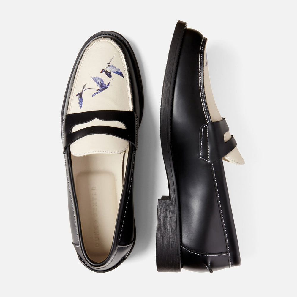 Capturing one of mother-nature’s most elegant bird mid-flight – representing renewal, revival and a return to life. So, a new season calls for the Printed Swallow Penny Loafer, we heard. Featuring a 25mm prefabricated TPU sole underfoot.